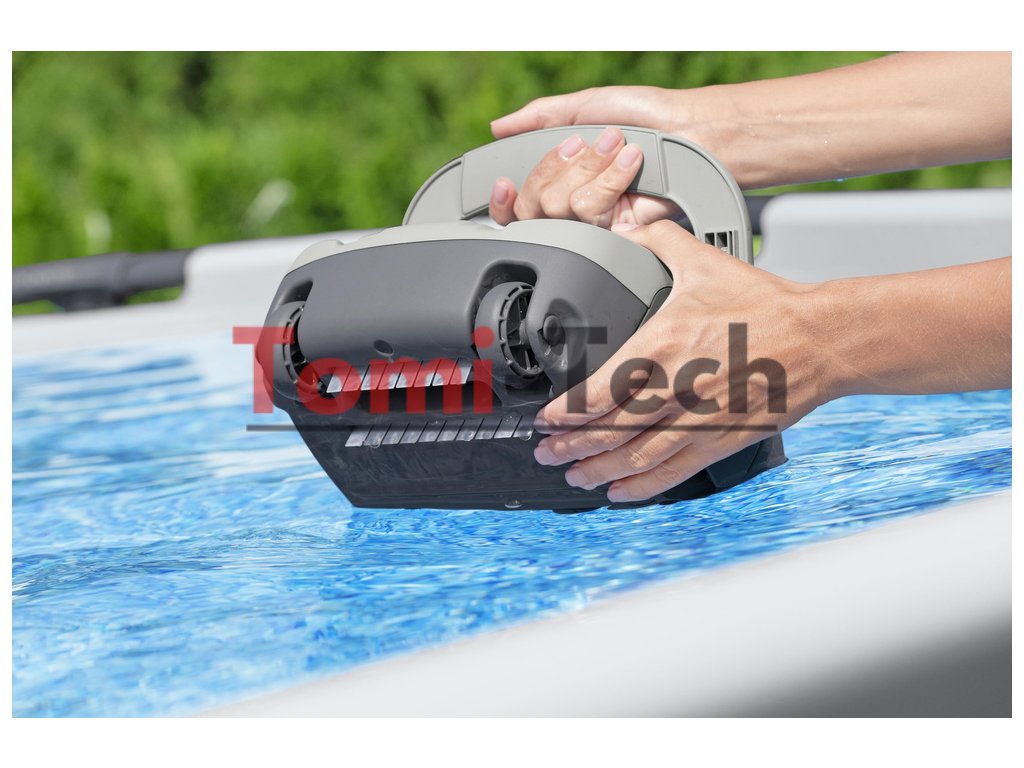Bestway AquaTronix G100 je automatický bazénový vysávač určený pre nadzemné bazény s plochým dnom. Zariadenie efektívne zhromažďuje piesok, lístie a iné drobné nečistoty, čím zaisťuje čistú vodu bez námahy.