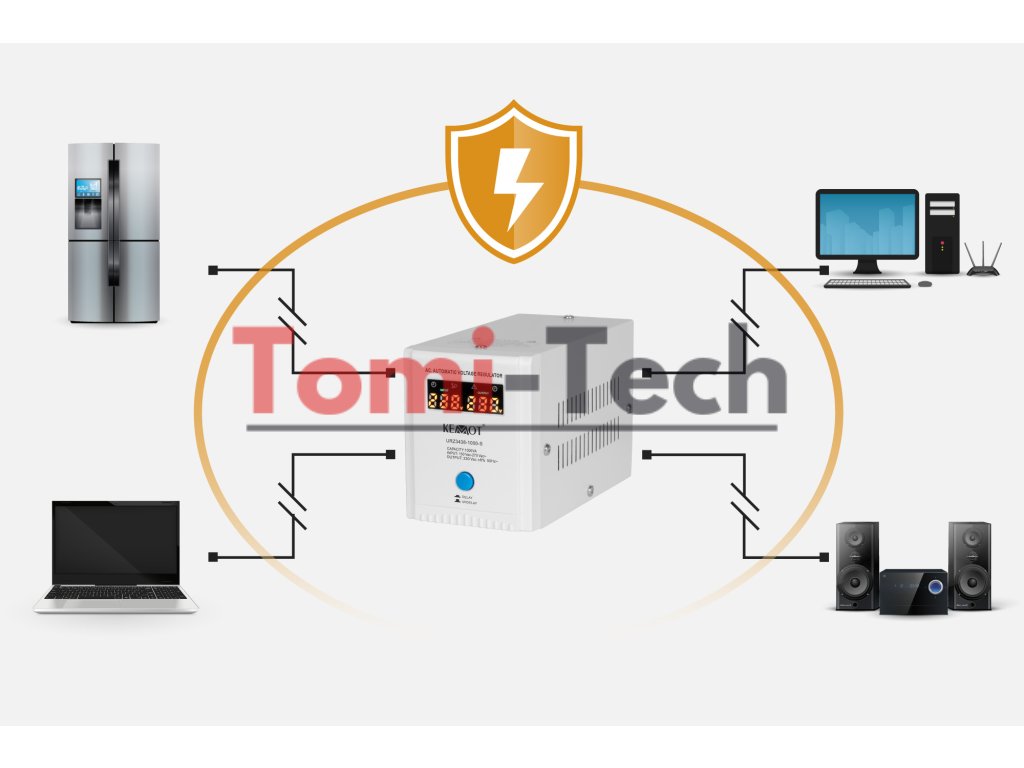 Bez ohľadu na zaťaženie siete a kolísanie výstupného napätia, regulátor KEMOT SER-1000-S ho udržiava na 230 V ±8 %, čo umožňuje efektívnu prevádzku všetkých zariadení vrátane tých, ktoré sú citlivé na kvalitu sieťového napätia. Regulácia je automatická, čo zaisťuje vysokú presnosť výstupného napätia. KEMOT SER-1000-S sa dá použiť v domácom aj kancelárskom prostredí, ideálne sa hodí pre televízory a RTV zariadenia, ako aj pre reproduktory, mini systémy a ďalšie audio/video zariadenia vrátane počítačov.
