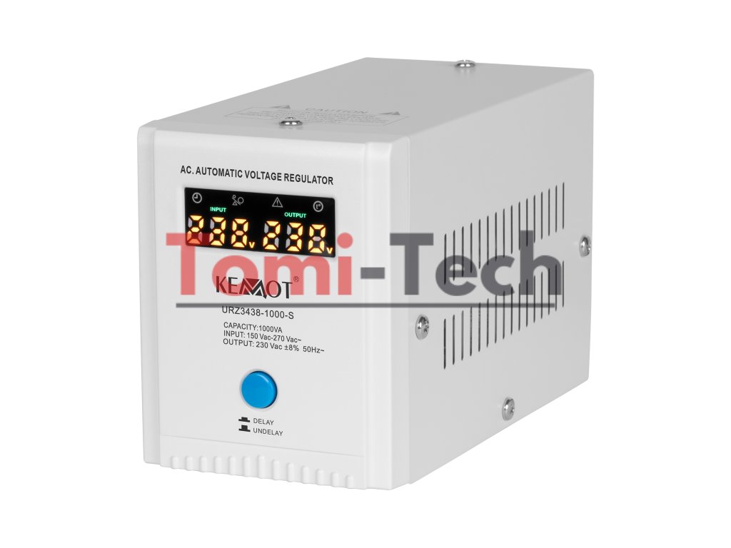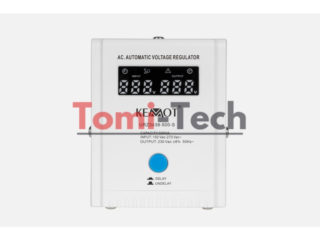 Ak potrebujete stabilizátor napätia pre zariadenia s vysokým okamžitým zapínacím prúdom, vyberte si model s funkciou oneskorenia zapnutia DELAY. KEMOT SER-1000-S je vybavený tlačidlom oneskorenia zapnutia DELAY s rozsahom 6 až 180 sekúnd, čo znižuje riziko poškodenia, keď majú pripojené zariadenia vysoký okamžitý zapínací prúd. Okrem toho má stabilizátor SER-1000-S ochranu pred príliš vysokým a nízkym napätím, preťažením, prehriatím a skratom.