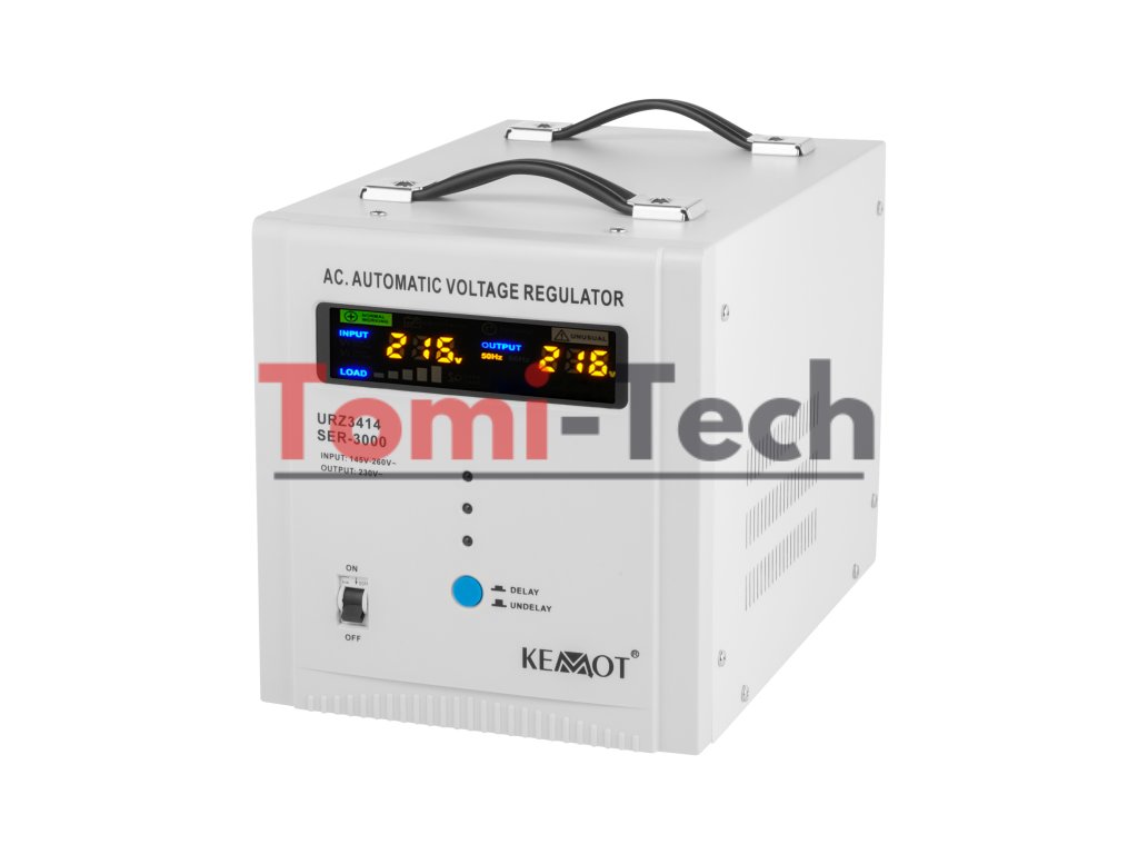 Ak potrebujete stabilizátor napätia pre zariadenia s vysokým okamžitým zapínacím prúdom, vyberte si model s funkciou ONESKORENIA. KEMOT SER-2000 je vybavený tlačidlom ONESKORENIA s rozsahom 6 až 180 sekúnd, čo znižuje riziko poškodenia, keď pripojené zariadenia majú vysoký okamžitý zapínací prúd. Okrem toho má stabilizátor SER-2000 ochranu pred príliš vysokým a nízkym napätím, preťažením, prehriatím a skratom.