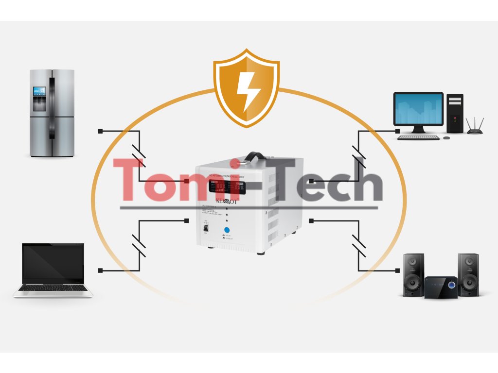 Bez ohľadu na zaťaženie siete a kolísanie výstupného napätia, regulátor KEMOT SER-5000-S ho udržiava na hodnote 230 V ±8 %, čo umožňuje efektívnu prevádzku všetkých zariadení vrátane tých, ktoré sú citlivé na kvalitu sieťového napätia. Regulácia je automatická, čo zaisťuje vysokú presnosť výstupného napätia. KEMOT SER-5000-S sa dá použiť v domácom aj kancelárskom prostredí, ideálne sa hodí pre televízory a RTV zariadenia, ako aj pre reproduktory, mini systémy a ďalšie audio/video zariadenia vrátane počítačov.