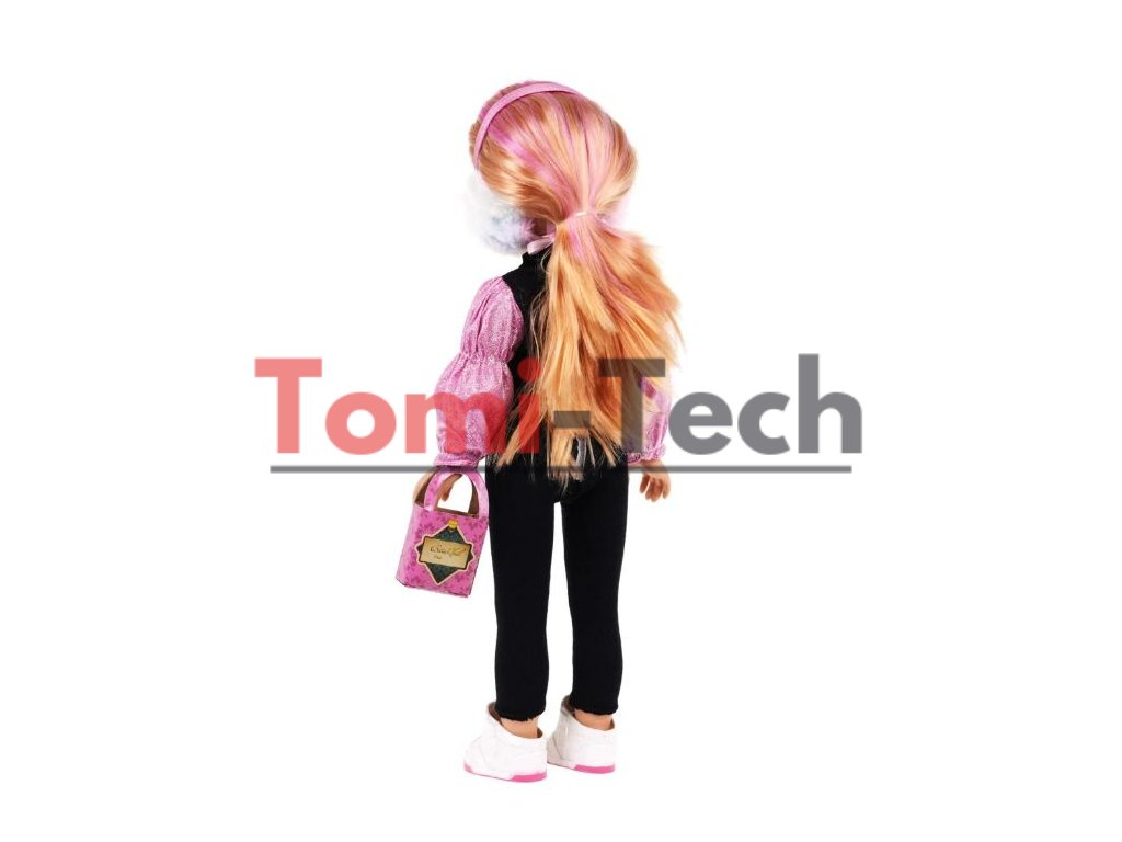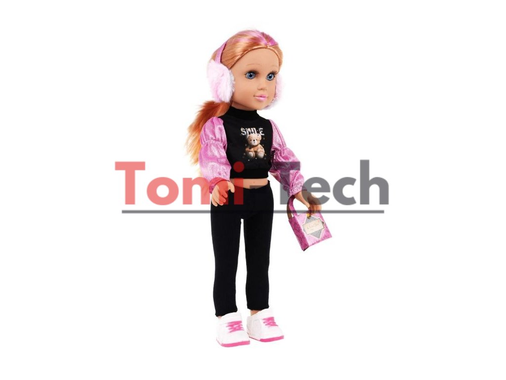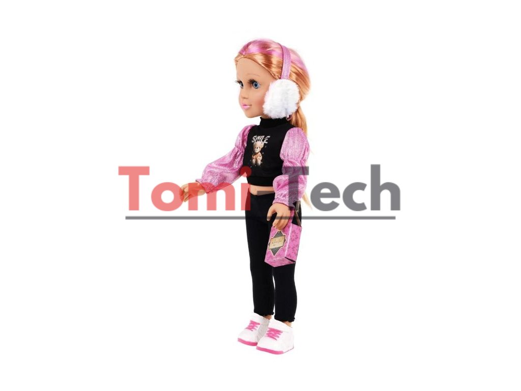 Bábika je dokonale spracovaná, s dôrazom na každý detail a úplne bezpečná pre dieťa. Má na sebe blúzku, nohavice a topánky. Má aj tašku a zimné klapky na uši. Na brušku bábiky je gombík, ktorý po stlačení zahrá veselú pesničku.