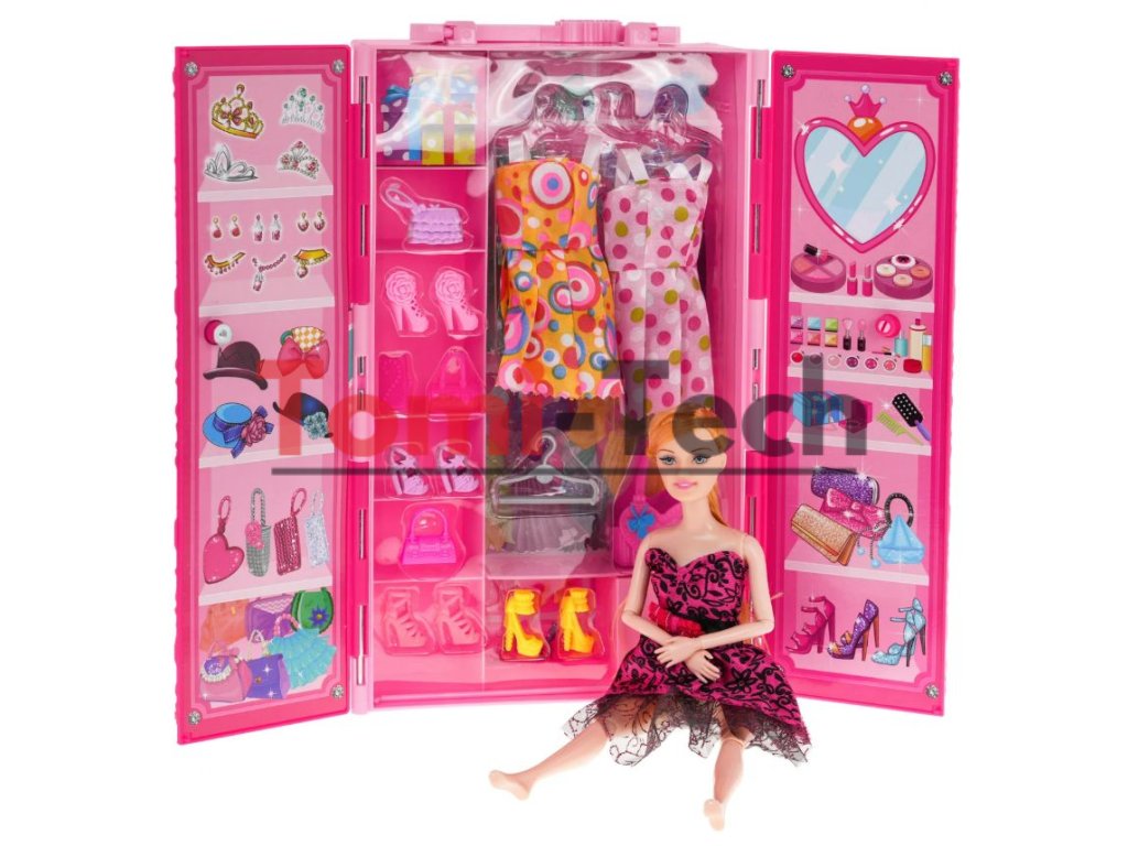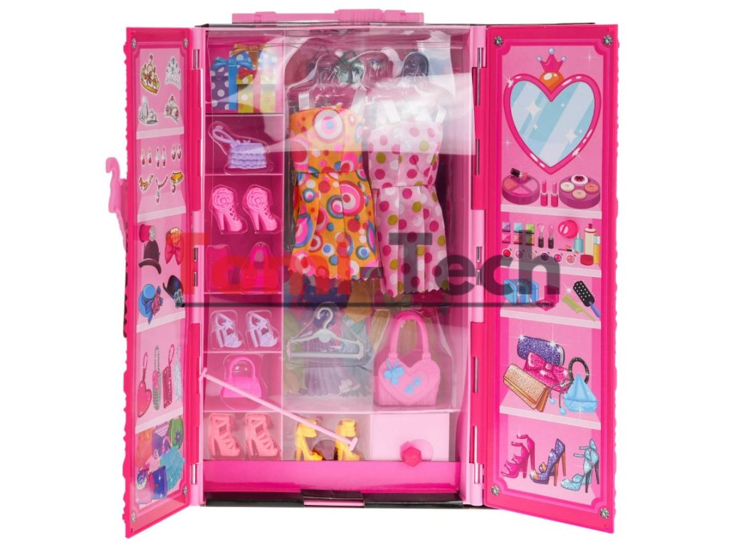 Miluje Vaše dieťa obliekať svoju bábiku? Sadu bábiky so šatníkom, ktorá je prenosná môžete vziať kamkoľvek so sebou. Úžasná skriňa obsahuje mnoho pokladov, ktoré potešia malé dievčatko.