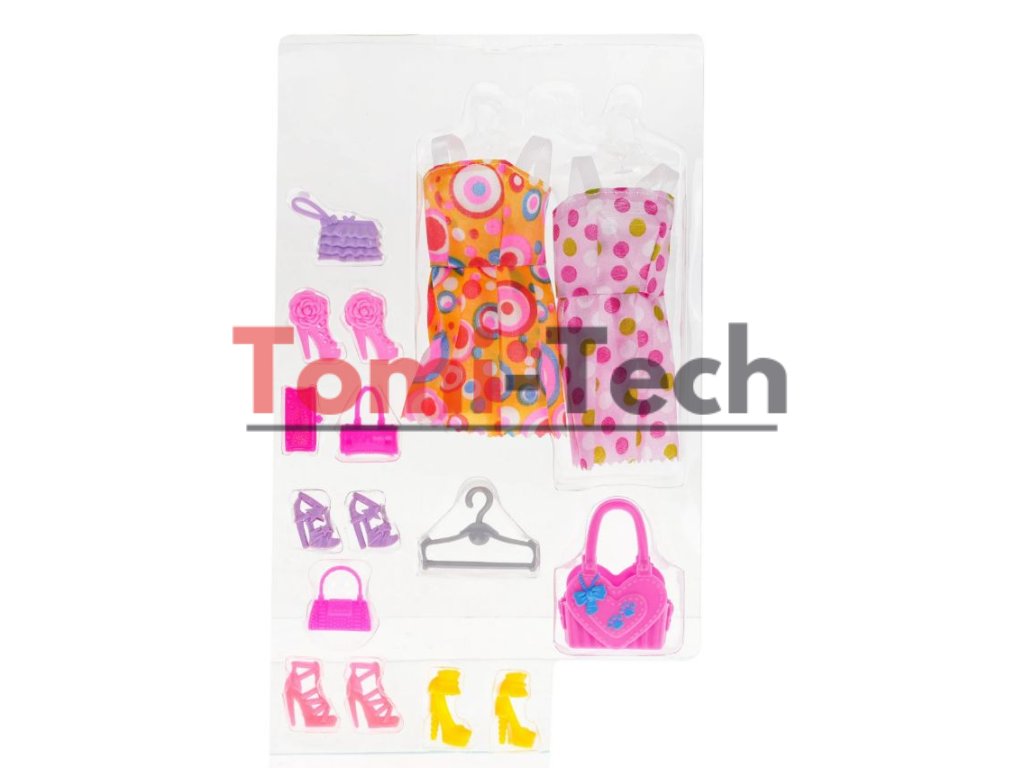 Obsah sady : Šatníková skriňa, 2 x šaty, 5 x kabelka rôznych veľkostí, 4 x topánky, 3 x ramienko, Škatule na drobnosti,Bábika v krásnych plesových šatách
