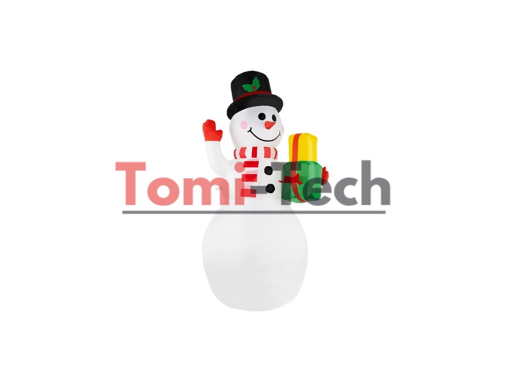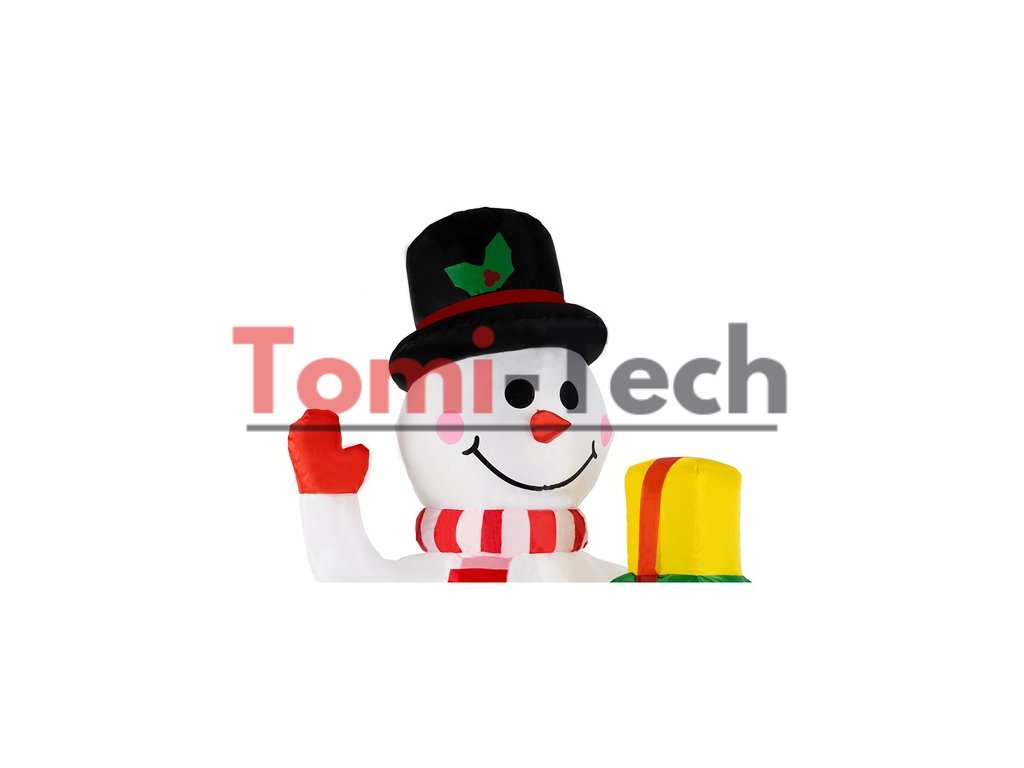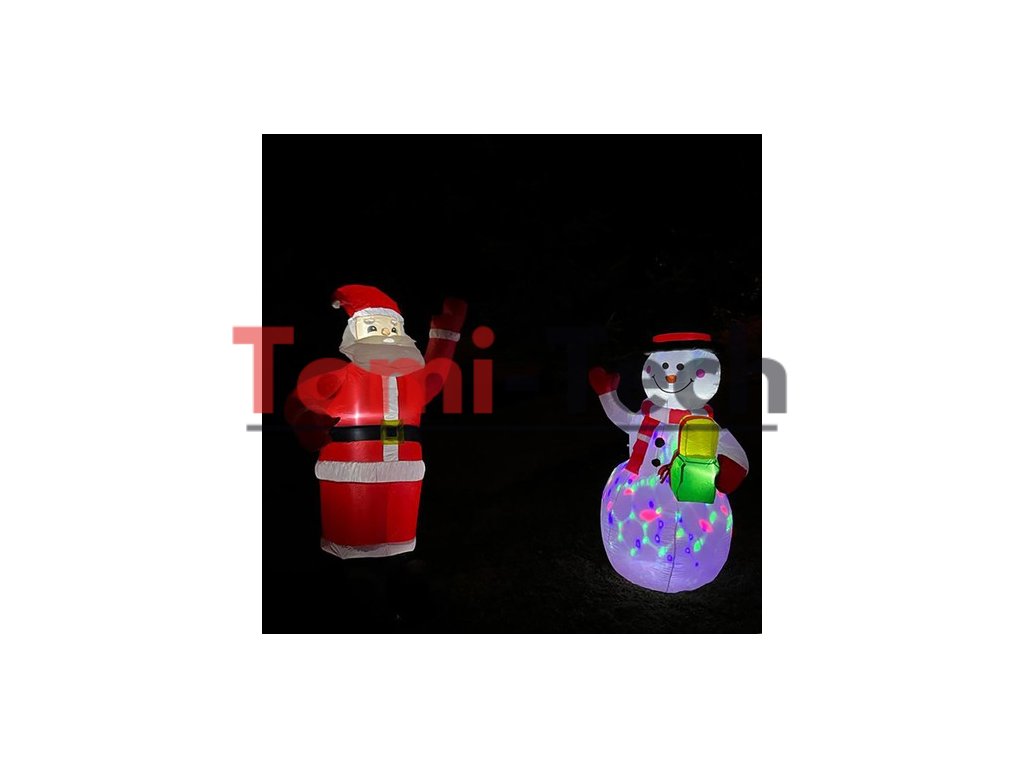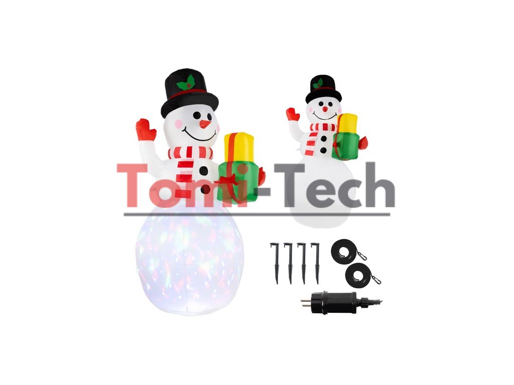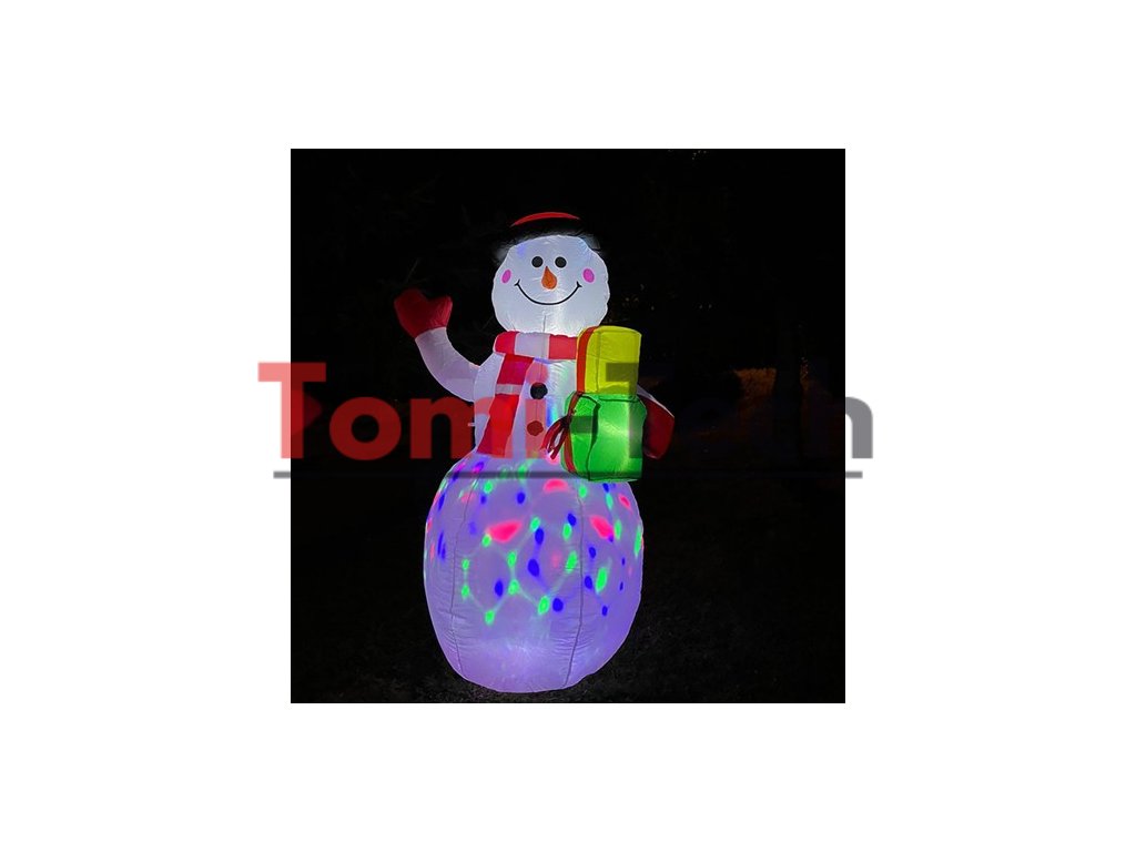 - VSTAVANÝ KOMPRESOR A ROTAČNÝ LED PROJEKTOR - snehuliak má zabudovaný kompresor, ktorý ho rýchlo nafúkne a skrášli ho. Dekorácia má navyše zabudovaný rotačný LED projektor, ktorý ju osvetľuje zvnútra. Po zotmení sa snehuliak trblieta všetkými vianočnými farbami. Projektor má 8 naprogramovaných striedavých svetelných sekvencií.