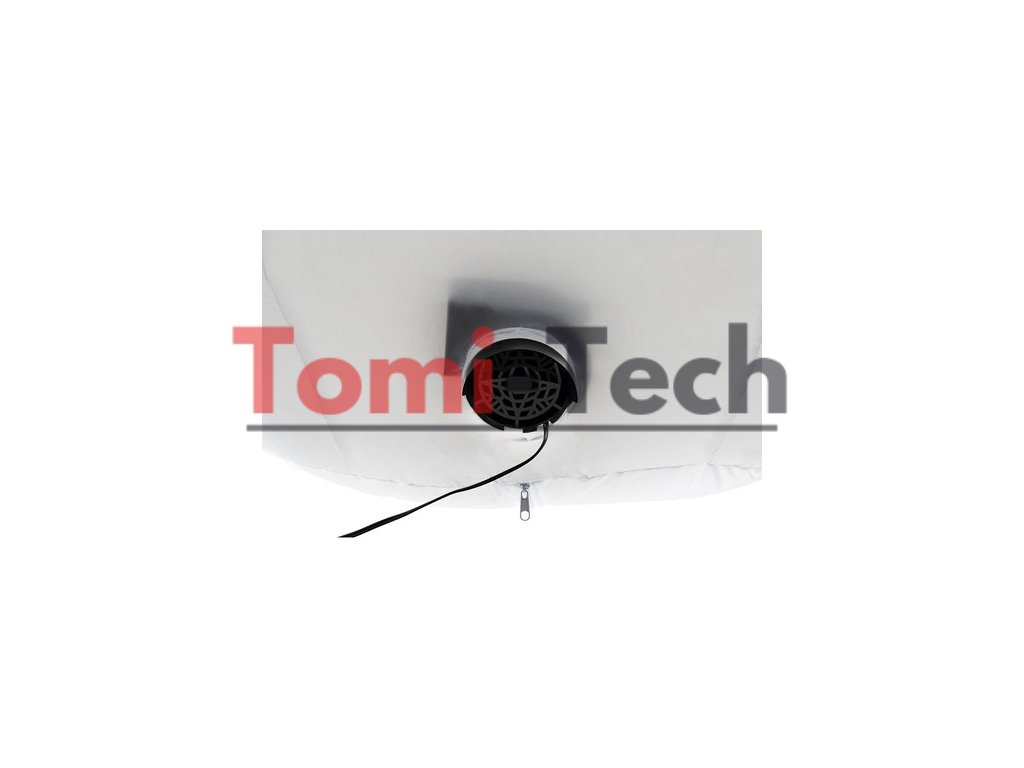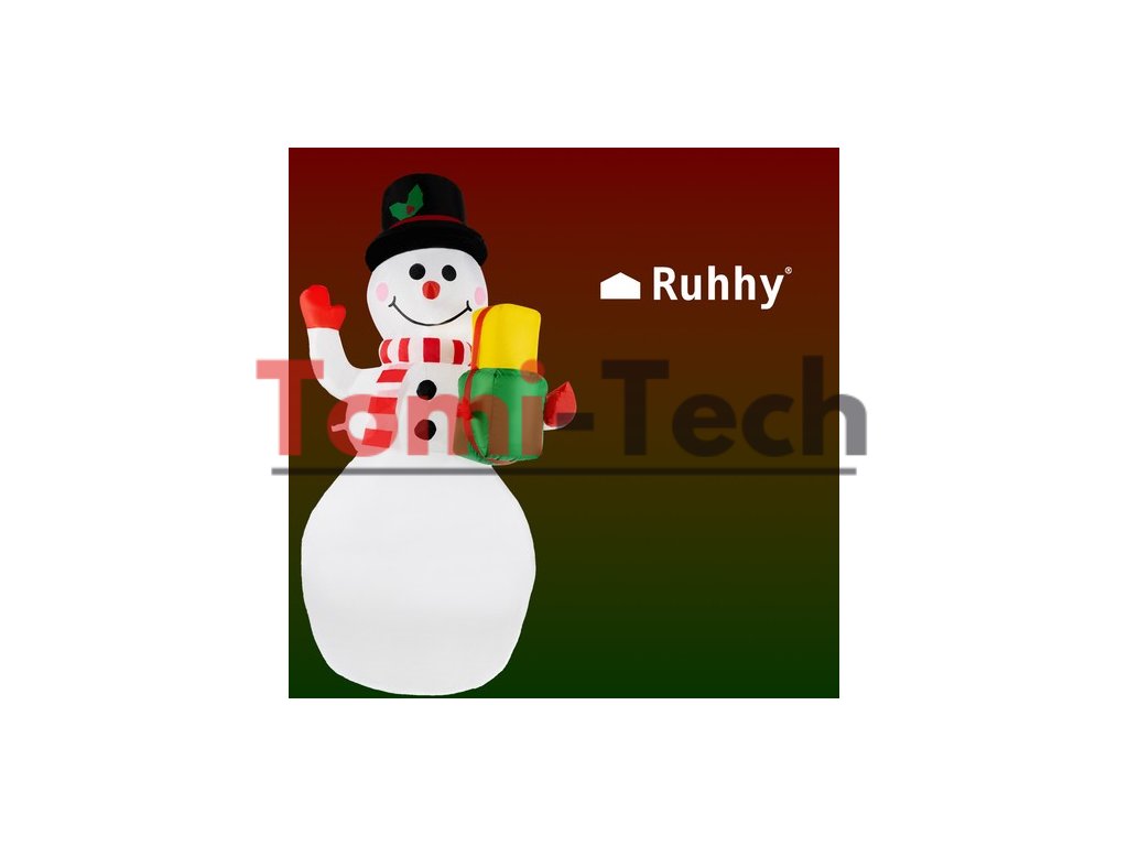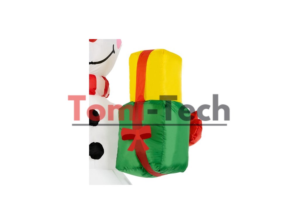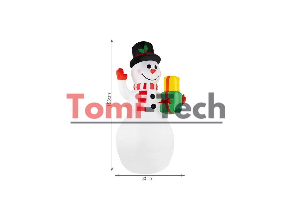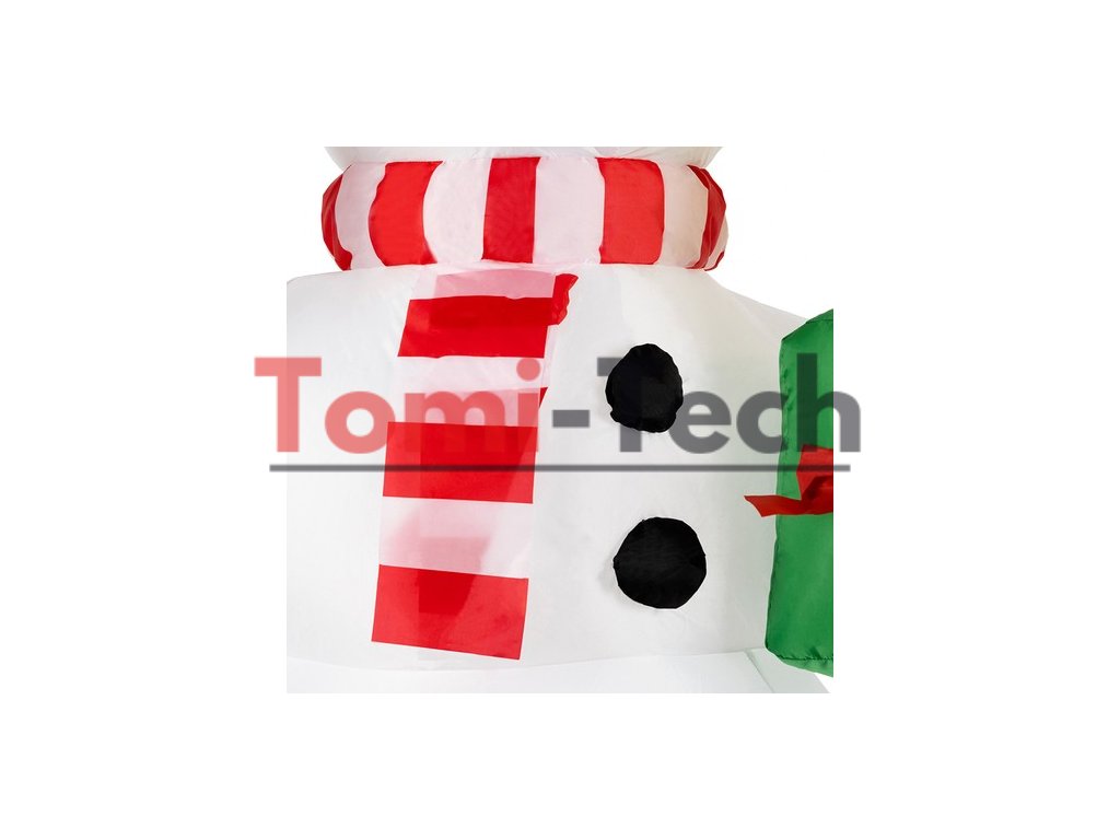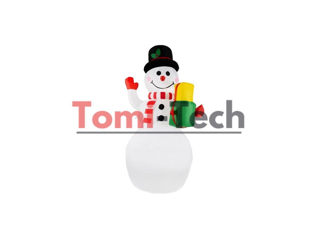 - VSTAVANÝ KOMPRESOR A ROTAČNÝ LED PROJEKTOR - snehuliak má zabudovaný kompresor, ktorý ho rýchlo nafúkne a skrášli ho. Dekorácia má navyše zabudovaný rotačný LED projektor, ktorý ju osvetľuje zvnútra. Po zotmení sa snehuliak trblieta všetkými vianočnými farbami. Projektor má 8 naprogramovaných striedavých svetelných sekvencií.