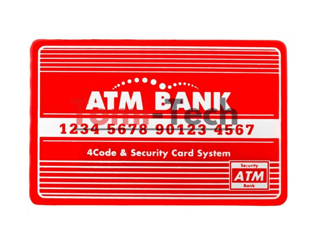 Peňaženka v tvare bankomatu s bankomatovou kartou a PIN zámkom.