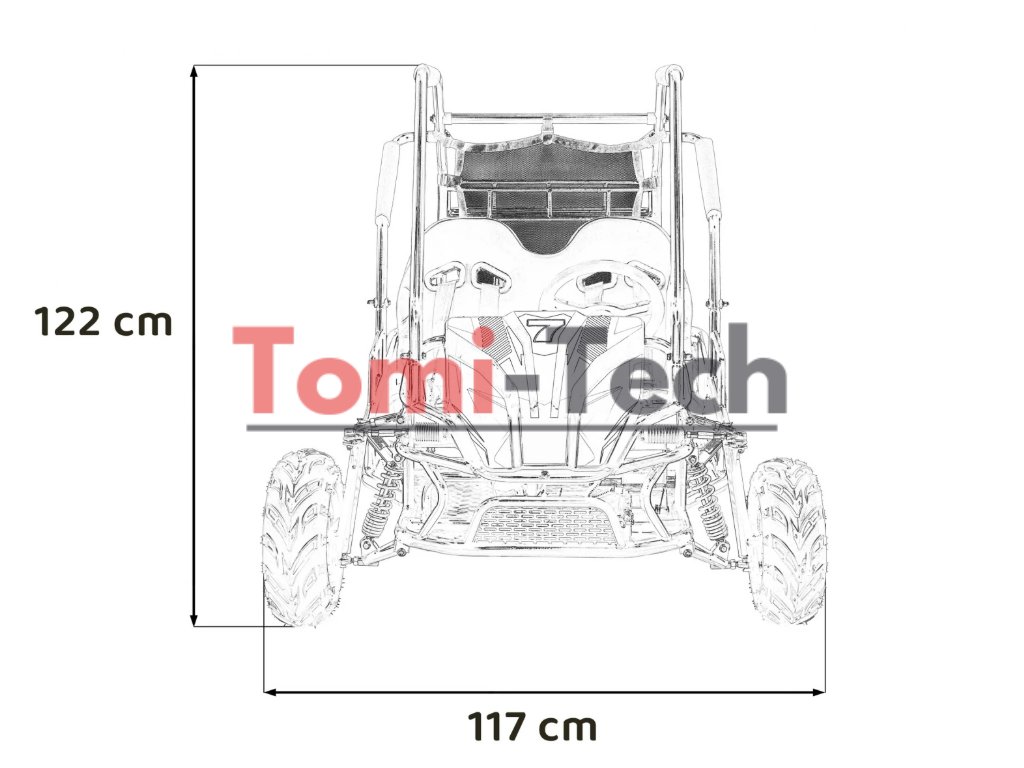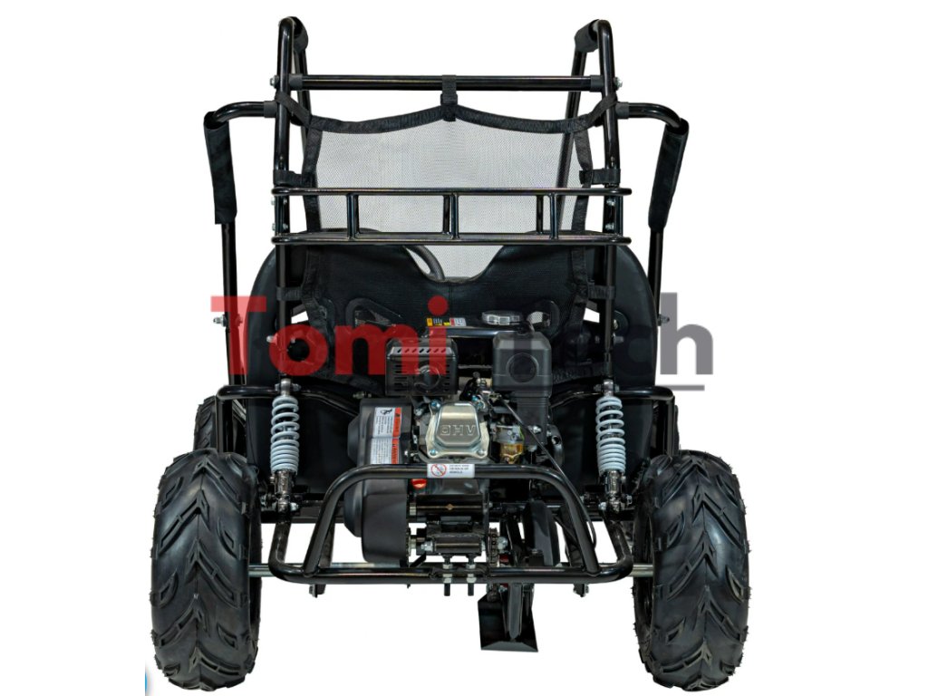 Benzínová BUGGY Lucky Seven pre tínedžerov od 13 rokov.Vydajte sa na dobrodružstvo s buginou Lucky Seven – vozidlom so spaľovacím motorom určeným pre tínedžerov od 13 rokov. Pevný rám s práškovou farbou a zosilnená bezpečnostná klietka pre spolujazdca a vodiča zaisťujú odolnosť a pohodlie pri jazde.Jednotlivé časti vozidla sú vyrobené z vysoko kvalitného, flexibilného plastu. Môžete si byť istí odolnosťou a zároveň je jeho montáž intuitívna a trvá približne 30-40 minút. Podrobný a jasný návod, ktorý je súčasťou súpravy, vám pomôže pri zostavení vozidla.Výkonný štvortaktný benzínový motor a reťazový pohon.Bugina Lucky Seven, vybavená jednovalcovým štvortaktným motorom s objemom približne 212 cm3, je zárukou dostatočného výkonu v akomkoľvek teréne. Jeho maximálny výkon je približne 5,3 kW/3600 ot./min. a max. krútiaci moment cca. 12 Nm/2500 ot./min. V tomto modeli je typ prevodovky automatická odstredivá spojka.Bugina Lucky Seven jazdí na bezolovnatý benzín s oktánovým číslom 90 alebo vyšším a má objem palivovej nádrže približne 3,6 litra. Používaný typ motorového oleja je SAE15W-30, pričom nádrž má objem približne 0,45 l. Vozidlo sa štartuje manuálnym typom, pripojeným k tlačidlu. Pohon je dvojité koleso s reťazovým pohonom.Zadná hydraulická brzda a dvojité tlmiče nárazov.Pre bezpečnosť používateľov je bugina Lucky Seven vybavený hydraulickou kotúčovou brzdou vzadu. Okrem toho nastaviteľný dvojramenný tlmič vpredu a nastaviteľné dvojité tlmiče vzadu vozidla zaručujú plynulú jazdu aj na nerovnom teréne. Zosilnená zadná výkyvná vidlica tiež zaisťuje maximálne pohodlie.Nafukovacie pneumatiky a nastaviteľné sedadlo s pásmi.Bugina Lucky Seven má 3-smerové nastaviteľné sedadlo a pevné bezpečnostné pásy, ktoré zaisťujú výnimočné pohodlie počas jazdy. Sedadlo je navyše športového profilu a odolný materiál zaisťuje vodeodolnosť.Pneumatiky vozidla sú nafukovacie a majú hrubý dezén. Táto kombinácia bude fungovať dobre vo všetkých podmienkach a na všetkých povrchoch. Rozmery predných kolies sú približne 145/70-6 a zadných kolies sú približne 16/8-7. Tlak v pneumatikách sa udržiava na približne 7,9 psi.Bugina Lucky Seven s návodom na montáž a použitie.Spolu s vozidlom dostanete návod na obsluhu, montážnu sadu a záručný list. Pri používaní buginy Lucky Seven je dôležité dodržiavať všetky bezpečnostné pokyny a pokyny na údržbu uvedené v návode. Najdôležitejšie sa týkajú zákazu jazdy na verejných komunikáciách a pamätania na ochranné doplnky, ako je prilba, vhodné oblečenie a obuv.Pravidelne by sa mali kontrolovať aj všetky upevnenia vozidla, brzdy a tlak v pneumatikách. Pre deti mladšie ako 16 rokov by jazda mala prebiehať iba pod dohľadom dospelej osoby, aby sa zabezpečila úplná bezpečnosť.