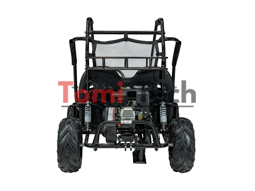 Benzínová BUGGY Lucky Seven pre tínedžerov od 13 rokov.Vydajte sa na dobrodružstvo s buginou Lucky Seven – vozidlom so spaľovacím motorom určeným pre tínedžerov od 13 rokov. Pevný rám s práškovou farbou a zosilnená bezpečnostná klietka pre spolujazdca a vodiča zaisťujú odolnosť a pohodlie pri jazde.Jednotlivé časti vozidla sú vyrobené z vysoko kvalitného, flexibilného plastu. Môžete si byť istí odolnosťou a zároveň je jeho montáž intuitívna a trvá približne 30-40 minút. Podrobný a jasný návod, ktorý je súčasťou súpravy, vám pomôže pri zostavení vozidla.Výkonný štvortaktný benzínový motor a reťazový pohon.Bugina Lucky Seven, vybavená jednovalcovým štvortaktným motorom s objemom približne 212 cm3, je zárukou dostatočného výkonu v akomkoľvek teréne. Jeho maximálny výkon je približne 5,3 kW/3600 ot./min. a max. krútiaci moment cca. 12 Nm/2500 ot./min. V tomto modeli je typ prevodovky automatická odstredivá spojka.