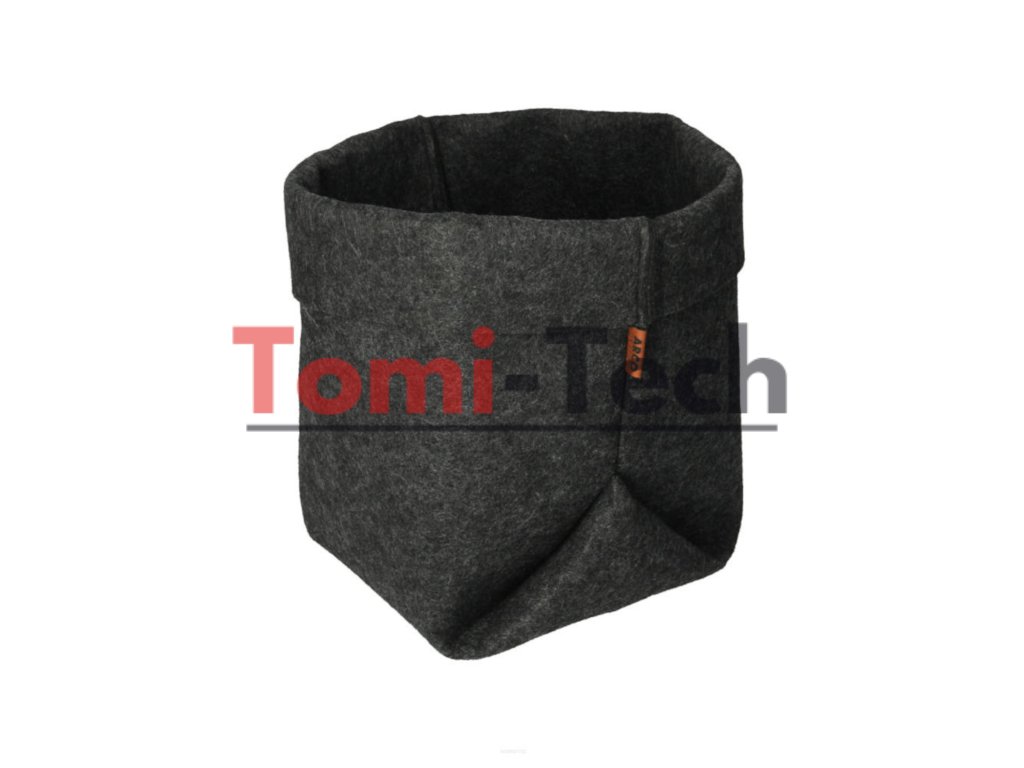 Štýlový a praktický kryt na kvetináč vyrobený z grafitového, ekologického polyesterového filcu. Jeho ľahká a priedušná štruktúra poskytuje rastlinám správne podmienky a zároveň chráni povrchy pred nečistotami.