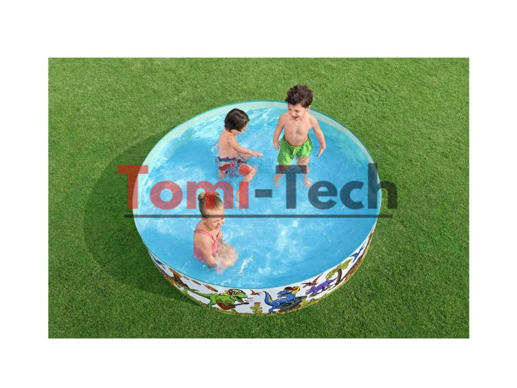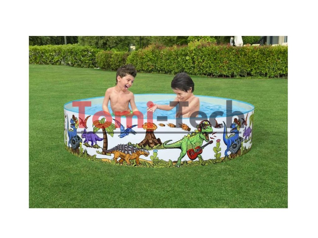 Detský záhradný bazén Bestway s dinosaurami je vyrobený zo silného vinylového materiálu, ktorý sa pri plnení vodou rozpína.