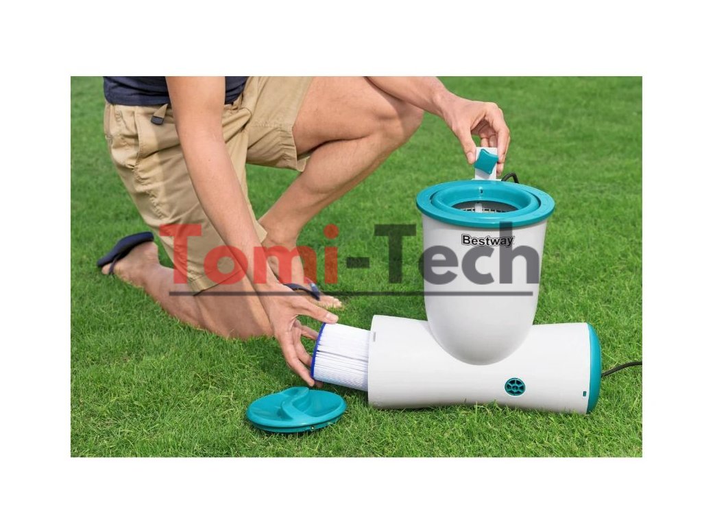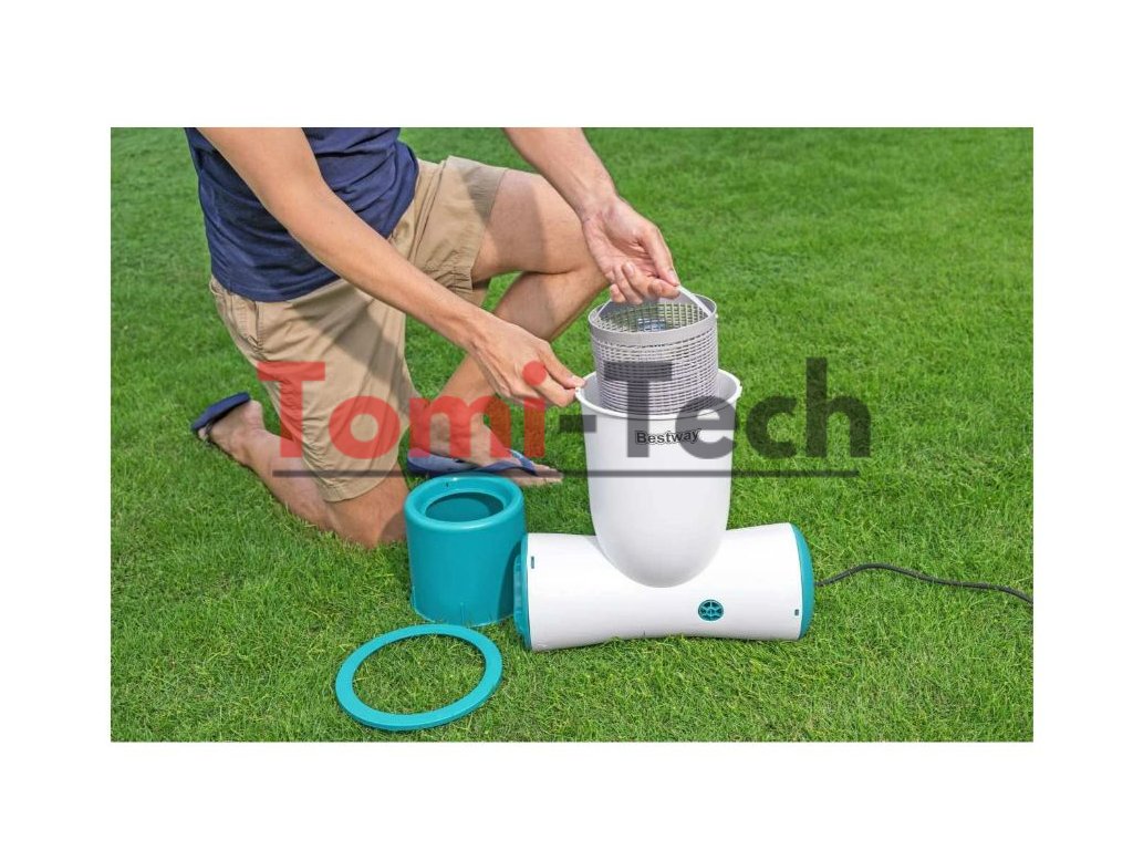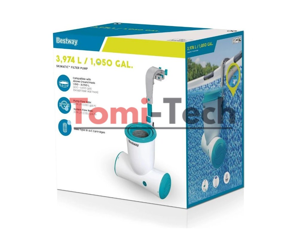 Filtrácia SKIMATIC™ od firmy BESTWAY je zariadenie pre tých majiteľov bazéna, ktorí chcú, aby ich voda bola stále čistá. Založená je na použití papierovej kartuše, ktorá vo vnútri filtrácie funguje ako prirodzená prekážka pretekajúcej vody a zachytáva tak všetky nečistoty rozptýlené vo vode. Použitím tejto filtrácie sa výrazne znižuje spotreba prostriedkov bazénovej chémie. Toto filtračné zariadenie je možné používať aj na bazény od iných výrobcov.