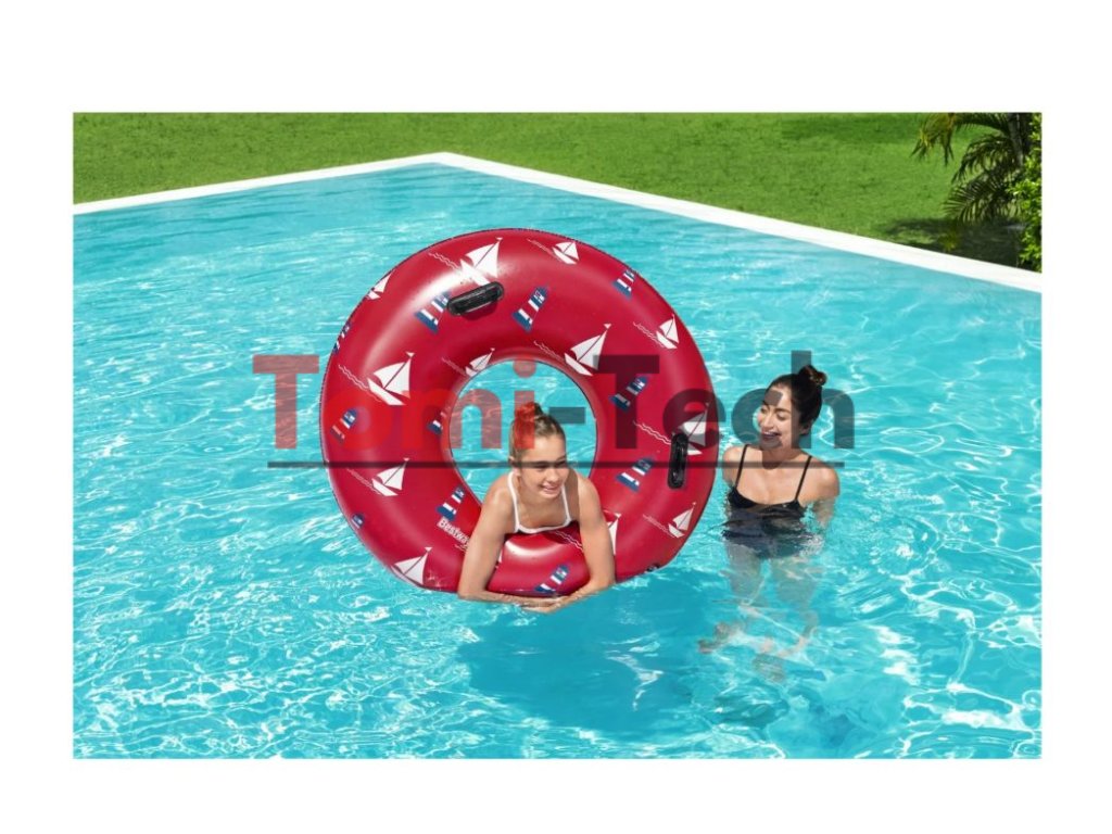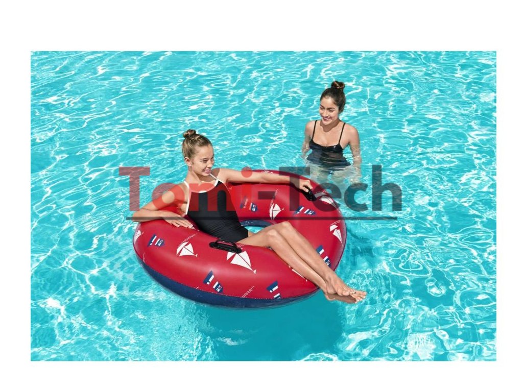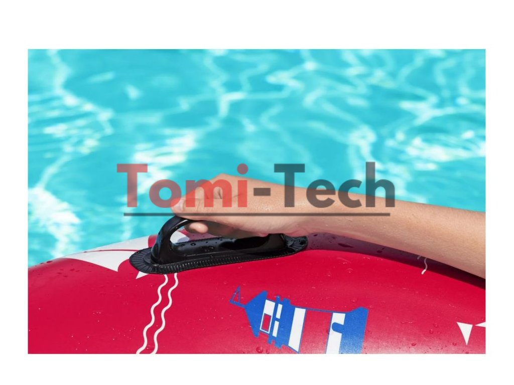 Bestway Nafukovacie Bicykel na Plávanie 119 cm je skvelým produktom od firmy Bestway na nadchádzajúce leto, ktoré vám pomôže udržať sa na hladine vody v tejto letnej sezóne. Bicykel je určený pre deti od 12 rokov a pre všetkých dospelých. Dizajn v námorníckom štýle vás privedie k tomu, aby ste na chvíľu zakotvili v bazéne, jazere alebo oceáne. Bicykel v príťažlivej intenzívnej červenej farbe je vybavený dvoma odolnými madlami, ktoré uľahčujú nastupovanie a vystupovanie pre osoby, ktoré sa vo vode necítia iste. Bicykel je vyrobený z odolného PVC materiálu, ktorý je odolný proti poškodeniu a slnečnému žiareniu.