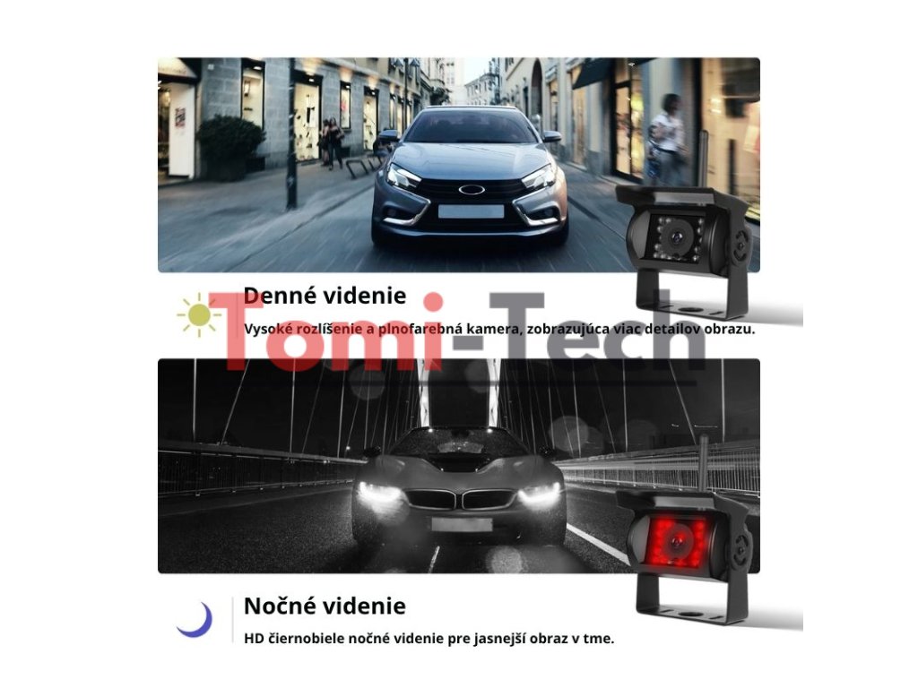 - Bezdrôtová zadná kamera s nočným videním (18 IR LED)