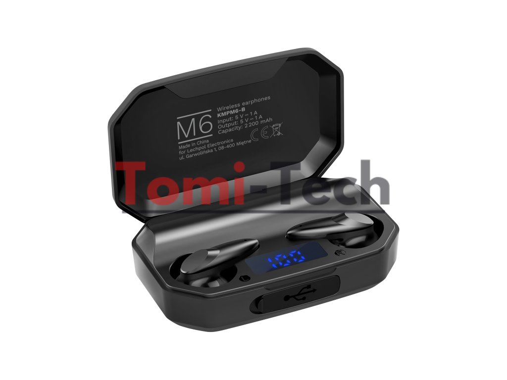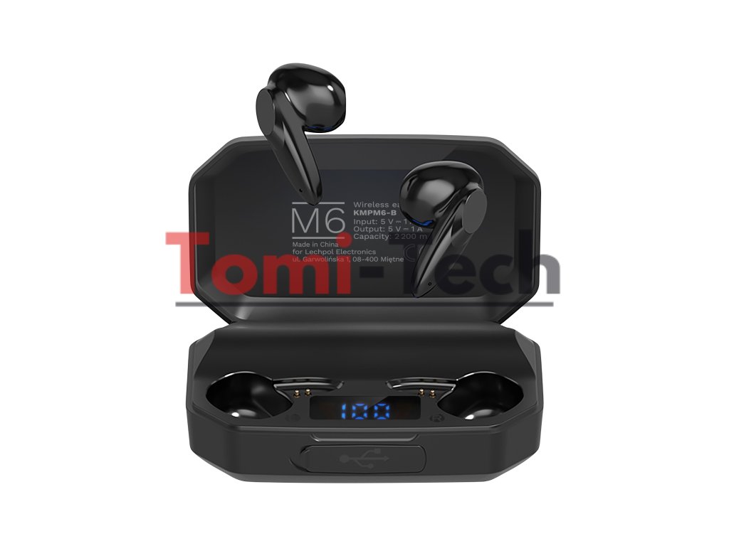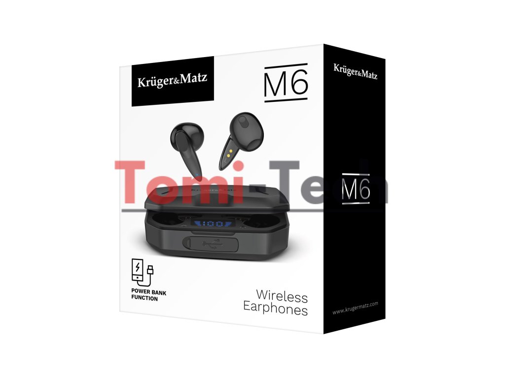 Bezdrôtové slúchadlá do uší Kruger&Matz M6 s powerbankou - čierne