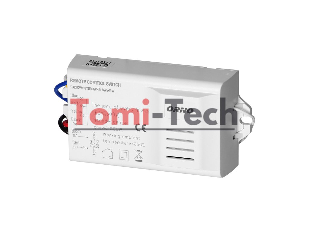 Toto zariadenie je určené na bezdrôtové zapínanie a vypínanie elektrických zariadení v interiéri vrátane osvetlenia. Zapínanie sa vykonáva pomocou diaľkového ovládača (vysielač, dva kusy sú súčasťou balenia). Prijímač je pripojený k osvetleniu ako štandardný vypínač. Dokáže súčasne zapínať a vypínať všetky pripojené lampy.Dodatočné parametre