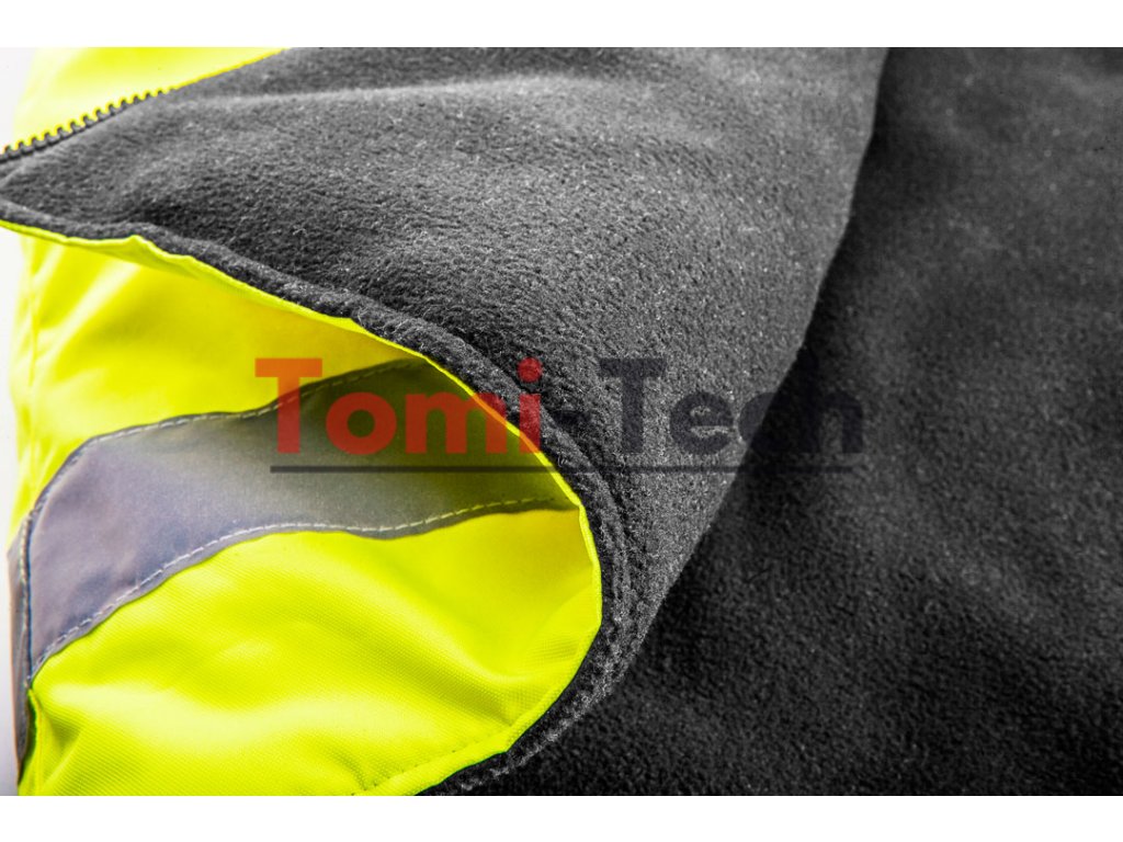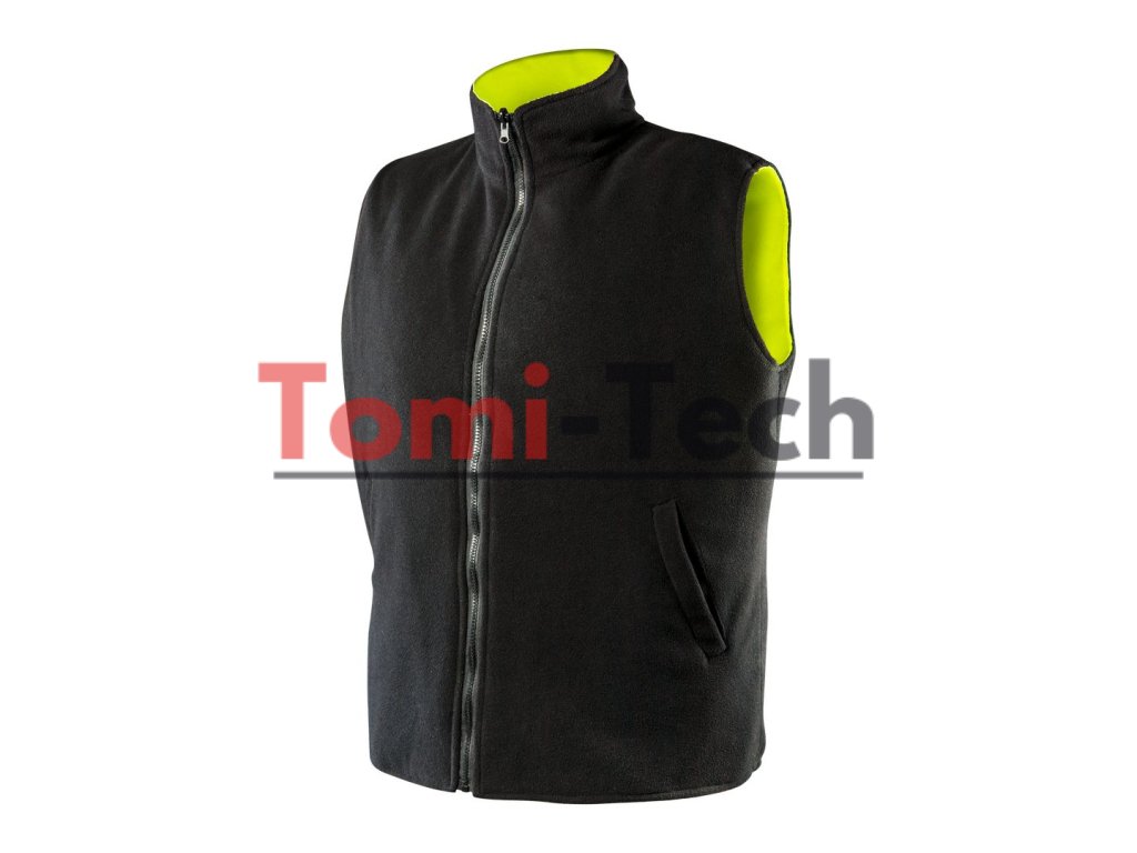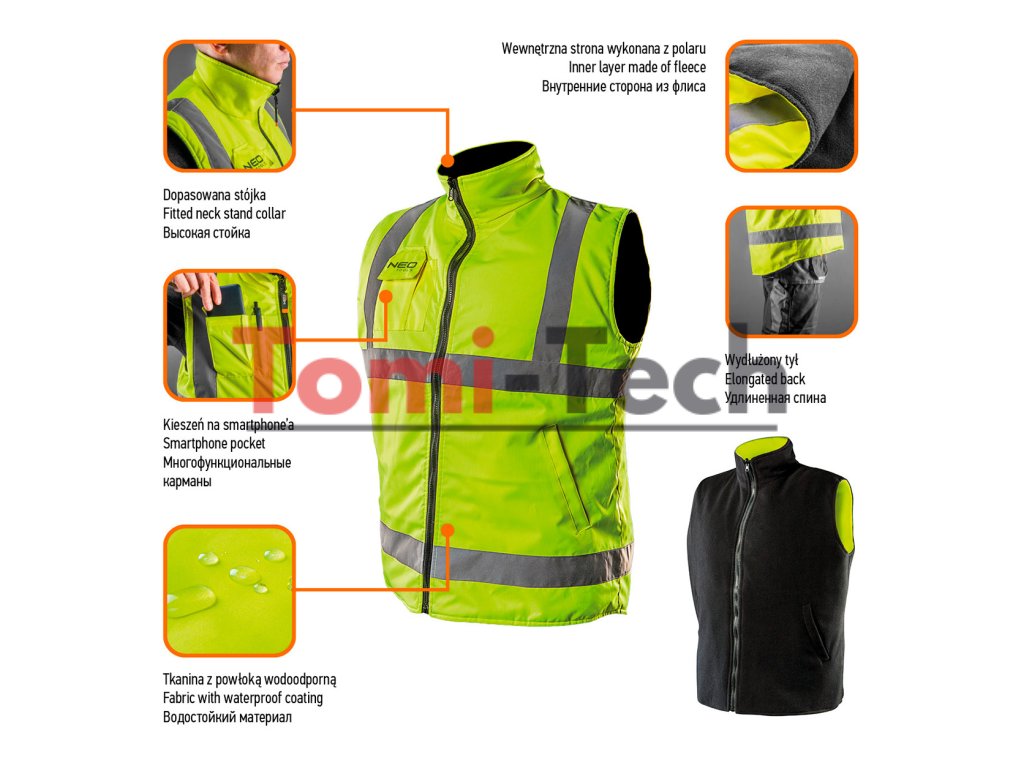 Pracovná vesta, veľkosť XL, obojstranná, jedna strana reflexná žltá (trieda 2 podľa EN ISO 20471), vodeodolná s PU povrchom, druhá strana flísová, vysoký stojačik, certifikácia CEDodatočné parametre