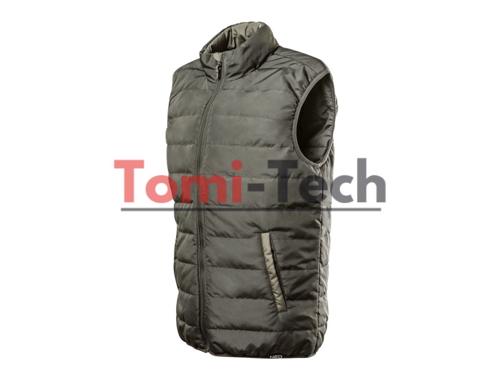 Obojstranná pracovná vesta CAMO, veľkosť XXL, prešívaná, vrchná látka 100 % polyester 80 g/m2, syntetická výplň 160 g/m2 (100 % polyester), vrecká na zips na svetlejšej strane, otvorené na tmavšej strane, vodeodolný záter, elastický lem, certifikácia CEDodatočné parametre