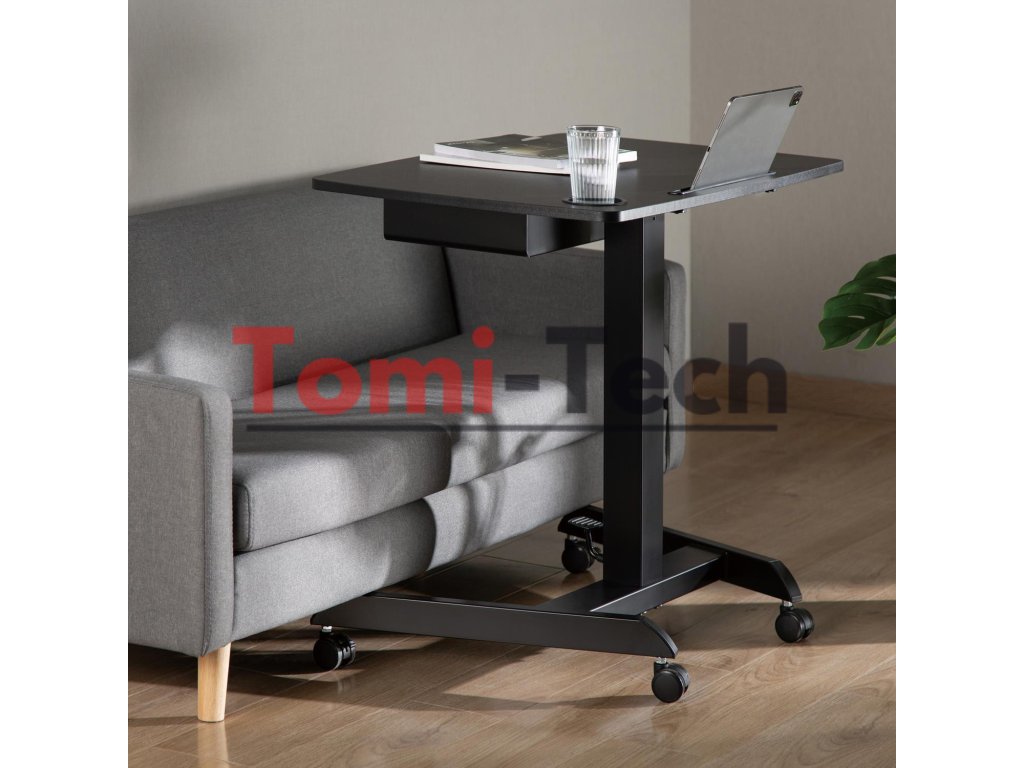 Stôl na notebook Maclean, výškovo nastaviteľný, so zásuvkou, čierny na prácu v sede aj v stoji, maximálna výška 113 cm - nosnosť 8 kg, M