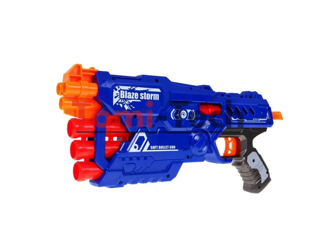 Samopal pre deti, ktorý je nabíjaný 6 penovými projektily, ktoré nikomu neublíži. Sú mäkké a tupé, nehrozí teda žiadne zranenia. Pištoľ sa nabíja spredu. Pištoľ strieľa až do vzdialenosti 10 m. Pištoľ je príručné, ľahká a odolná. S touto pištoľou sa Vaše dieťa nudiť nebude, usporiadajte poriadnu strieľačku u Vás doma, určite sa zapojí aj oteckovia a vráti sa do detských rokov spolu so svojimi synmi. V ponuke máme viac druhov pištoľou značky Blaze Storm. Vhodná veková kategória 8 rokov + a certifikát CE.