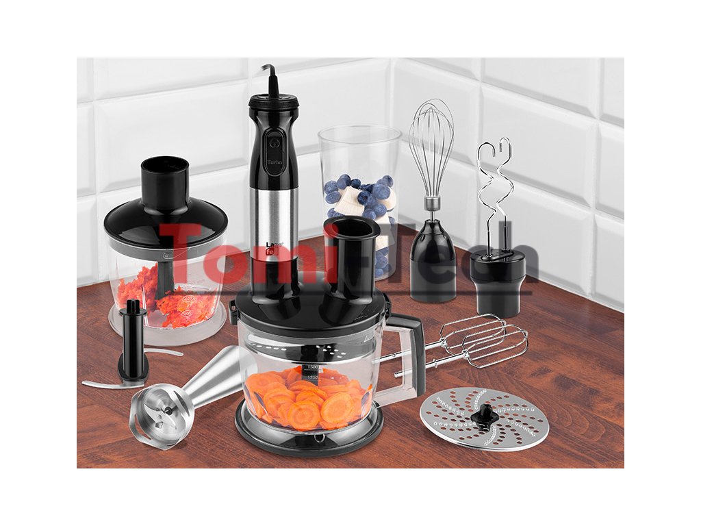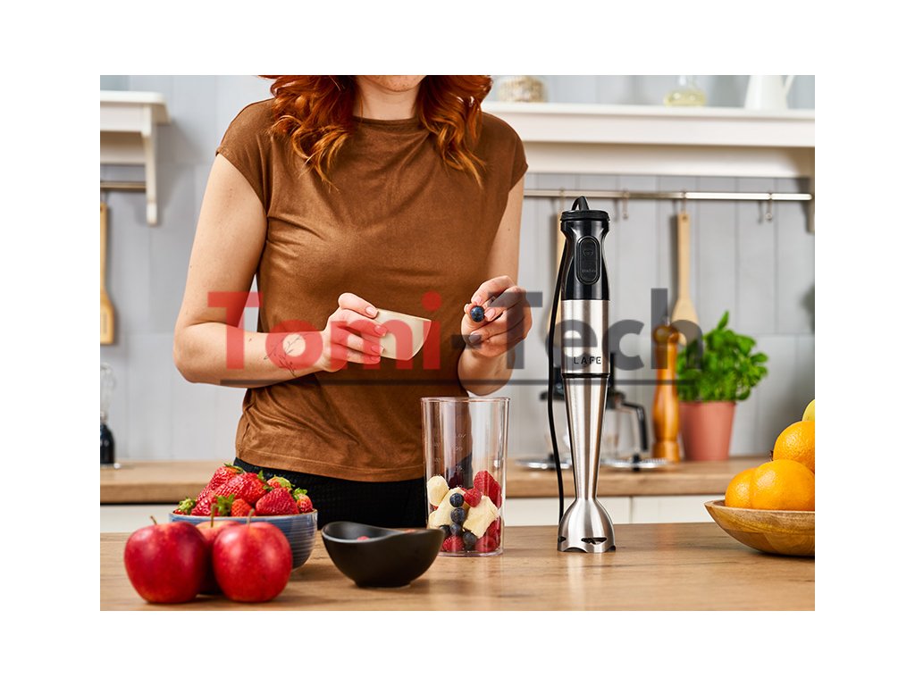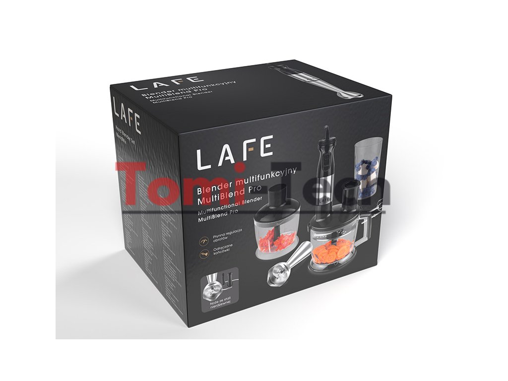 Lafe MultiBlend Pro – všestranný mixér na špeciálne úlohyLafe MultiBlend Pro je multifunkčná kuchynská sada, ktorá vo vašej kuchyni ľahko nahradí niekoľko spotrebičov. Vďaka rozsiahlej výbave a výkonu 1000 W si hravo poradí s mixovaním, sekaním, šľahaním alebo krájaním - rýchlo a presne.