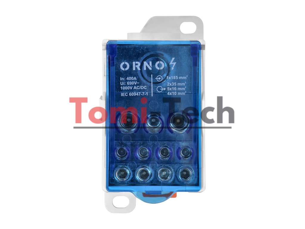 Rozvodný blok 400A, vstupná svorkovnica 1x185mm², výstupné svorkovnice 4x10 a 5x16 a 2x35mm², pohodlná montáž na DIN lištuDodatočné parametre