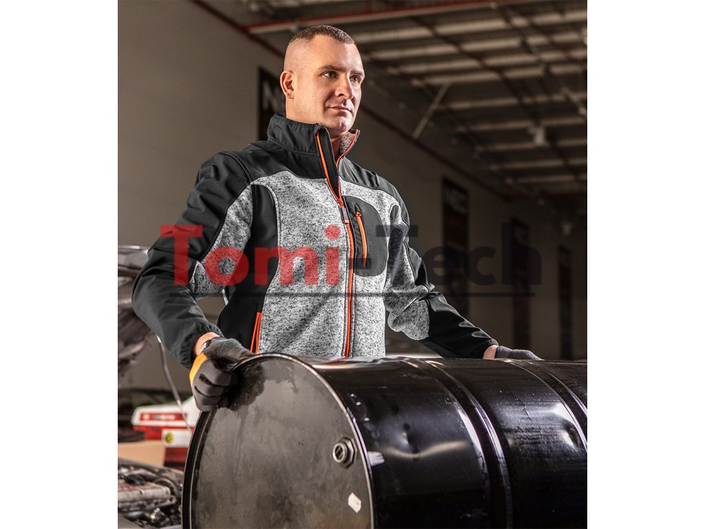 Pletená mikina vystužená softshellovou tkaninou, veľkosť XL, vrecká na zips, elastické manžety a nastaviteľný pás, mäkká vnútorná úprava, certifikácia CEDodatočné parametre