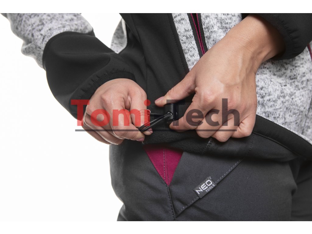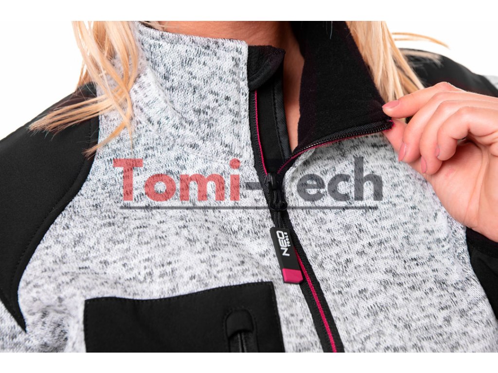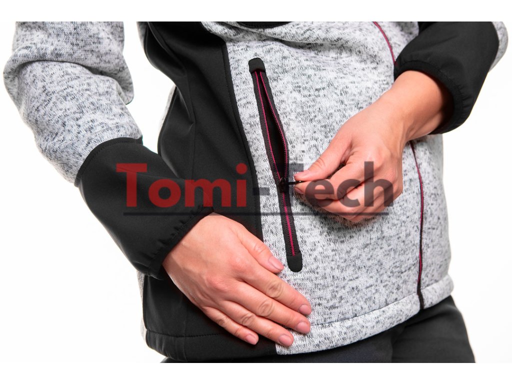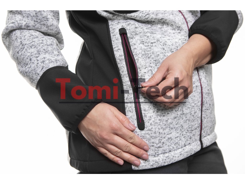 Dámska pletená mikina, veľkosť L, softshellová výstuž, 3 vrecká na zips, elastické manžety a nastaviteľný pás, mäkká vnútorná úprava, identifikačná vsadka, moderné farby, certifikácia CEDodatočné parametre