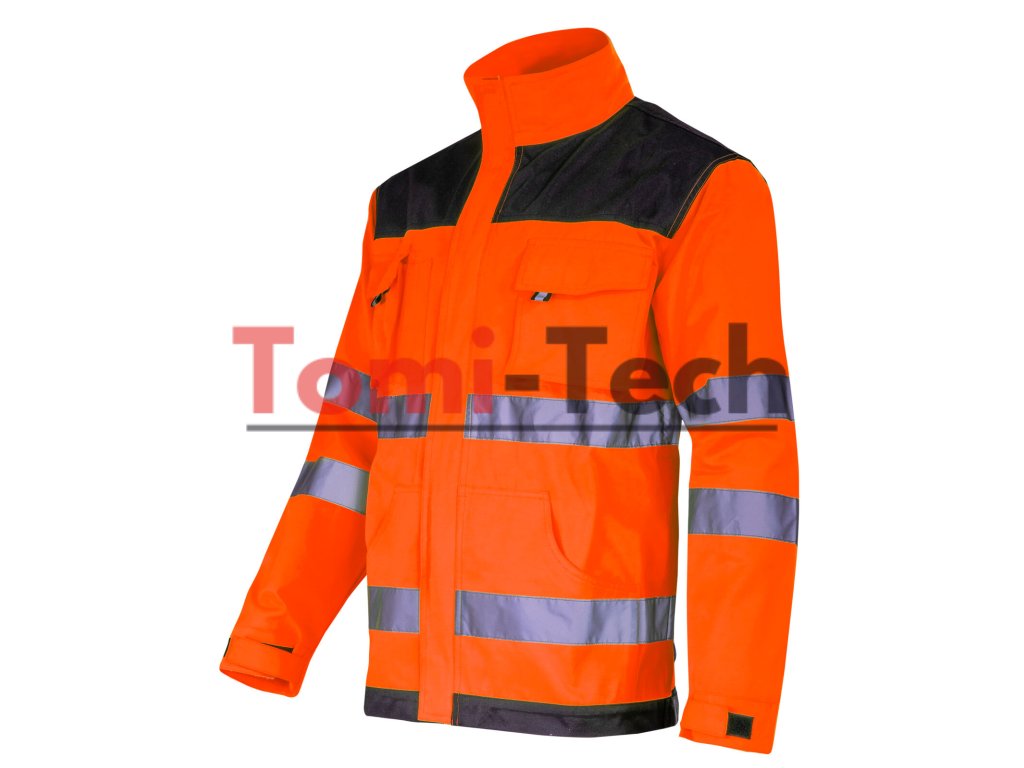 Reflexná pracovná bunda Lahti Pro L40417 má moderný a pohodlný strih. Bunda je vyrobená z látky s gramážou 270 g/m², ktorá pozostáva zo 40 % bavlny a 60 % polyesteru. Má päť praktických a funkčných vreciek, z ktorých dve sú so zapínaním na suchý zips, a vrecko na mobilný telefón. Reflexné bundy Lahti Pro L40417 sú navyše vystužené polyesterom 600D na krku a v spodnej časti. Rukávy sú nastaviteľné suchým zipsom. Bundy majú identifikačnú vložku. Bezpečnostné vesty Lahti Pro L40417 sú klasifikované ako osobné ochranné prostriedky kategórie II. Dvojito prešívané reflexné pruhy zodpovedajú norme EN ISO 20471, ktorú vydal Ústredný inštitút pre ochranu práce (CIOP), a spĺňajú ustanovenia normy EN ISO 13688.