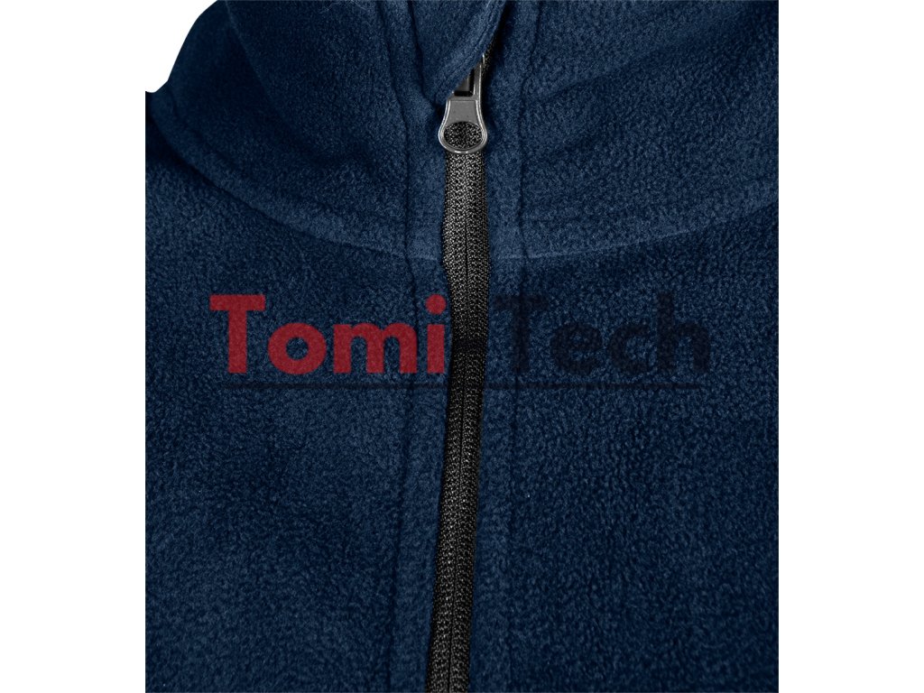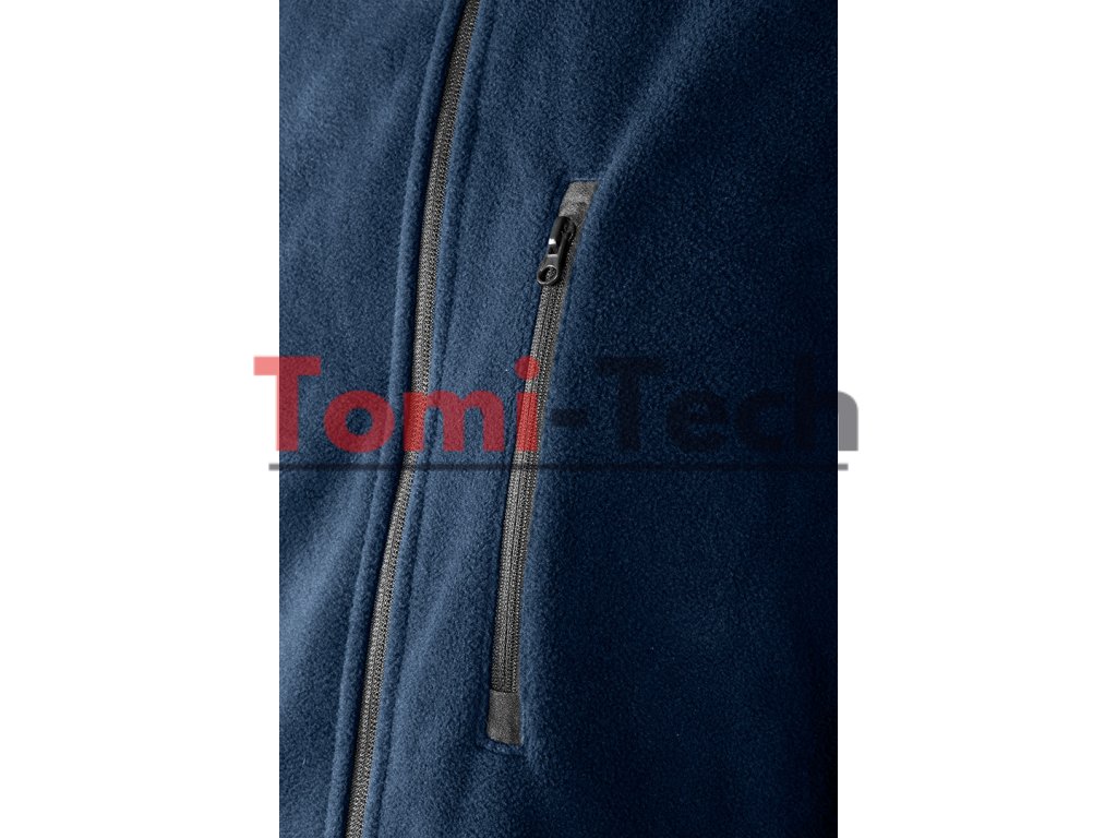 Flísová mikina, tmavomodrá, veľkosť L, zloženie materiálu: 100% polyester, gramáž: 300 g/m2, 3 vrecká na zips, nastaviteľný pás, vyšívané logo na chrbte, identifikačná vsadka, certifikát CEDodatočné parametre