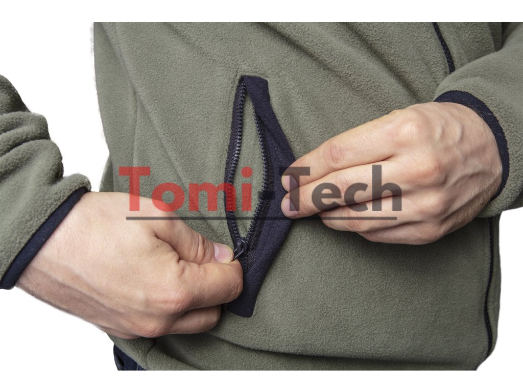 Mikina s vystuženým flísom CAMO, veľkosť L, vyrobená z vysoko kvalitného flísu 300 g/m2, 100 % polyester, 2 vrecká na zips, výstuhy na ramenách a lakťoch z oxfordskej látky (100 % bavlna, 250 g/m2), certifikácia CEDodatočné parametre