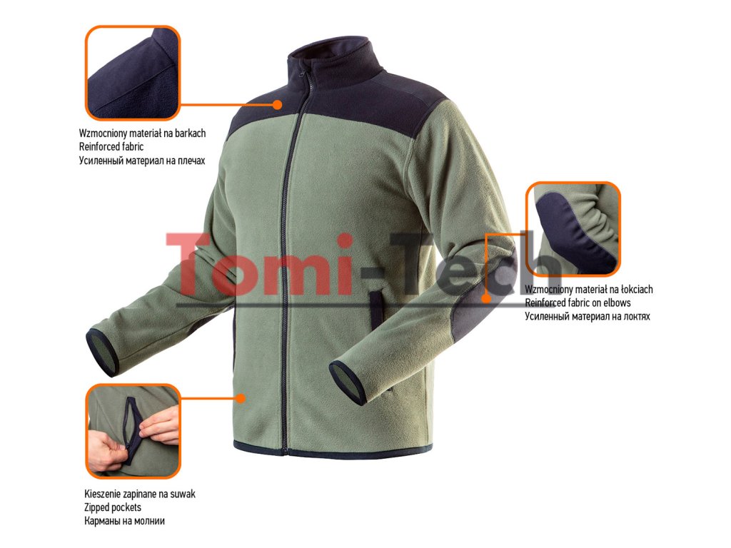 Mikina s vystuženým flísom CAMO, veľkosť S, vyrobená z vysoko kvalitného flísu 300 g/m2, 100 % polyester, 2 vrecká na zips, výstuhy na ramenách a lakťoch z oxfordskej látky (100 % bavlna, 250 g/m2), certifikácia CEDodatočné parametre