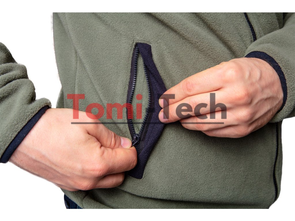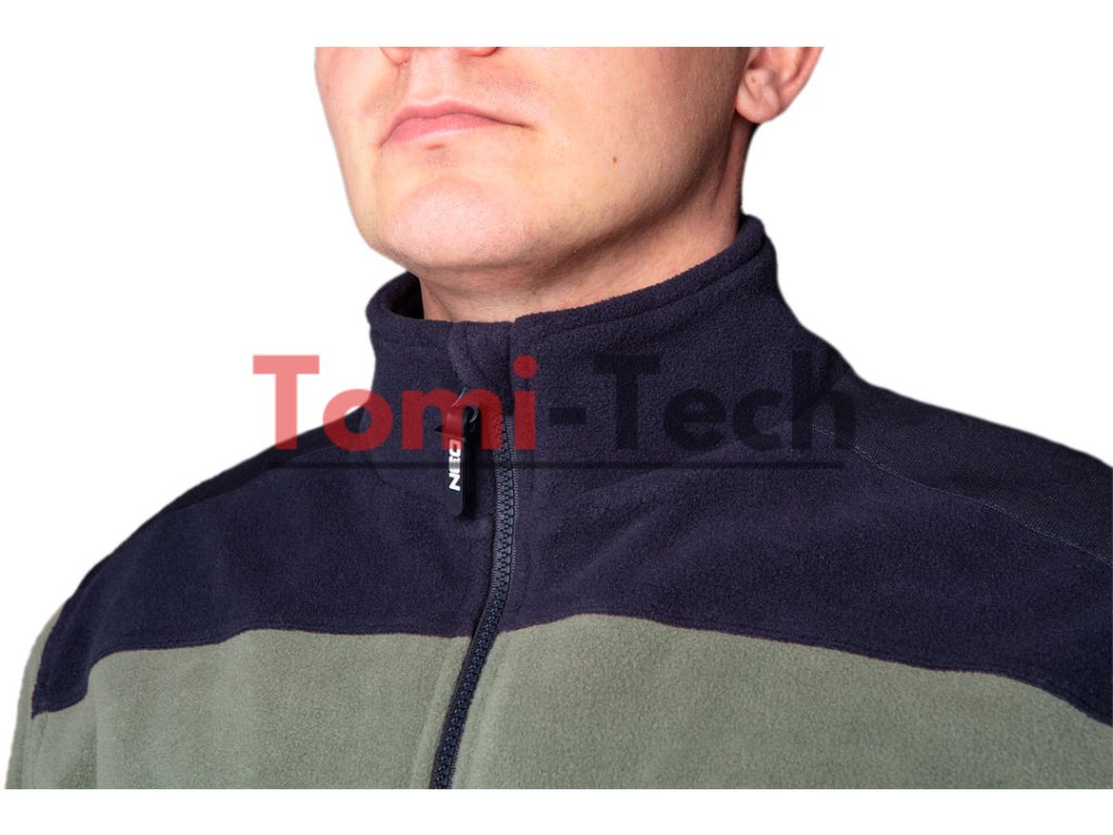 Mikina s vystuženým flísom CAMO, veľkosť XL, vyrobená z vysoko kvalitného flísu 300 g/m2, 100% polyester, 2 vrecká na zips, výstuhy na ramenách a lakťoch z oxfordskej látky (100% bavlna, 250 g/m2), certifikácia CEDodatočné parametre