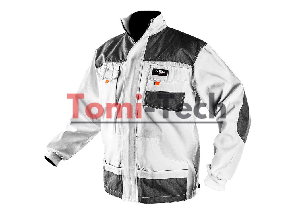 Biela pracovná mikina, veľkosť XXL/58, 35 % bavlna, 65 % polyester, 267 g/m2, výstuhy z oxfordskej tkaniny, vystužené vrecká, reflexný prvok na chrbte, CE, EN ISO 13688:2013Dodatočné parametre