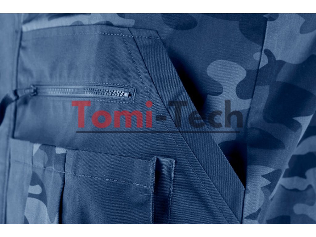 Pracovná mikina CAMO Navy, zloženie: 60% bavlna, 37% polyester, 3% elastan, unikátny vzor v odtieňoch modrej, identifikačná vsadka, profilované lakte, multifunkčné vrecká so zipsom, suchý zips, záhyb prekrývajúci zips, nastaviteľné manžety, veľkosť XXLDodatočné parametre
