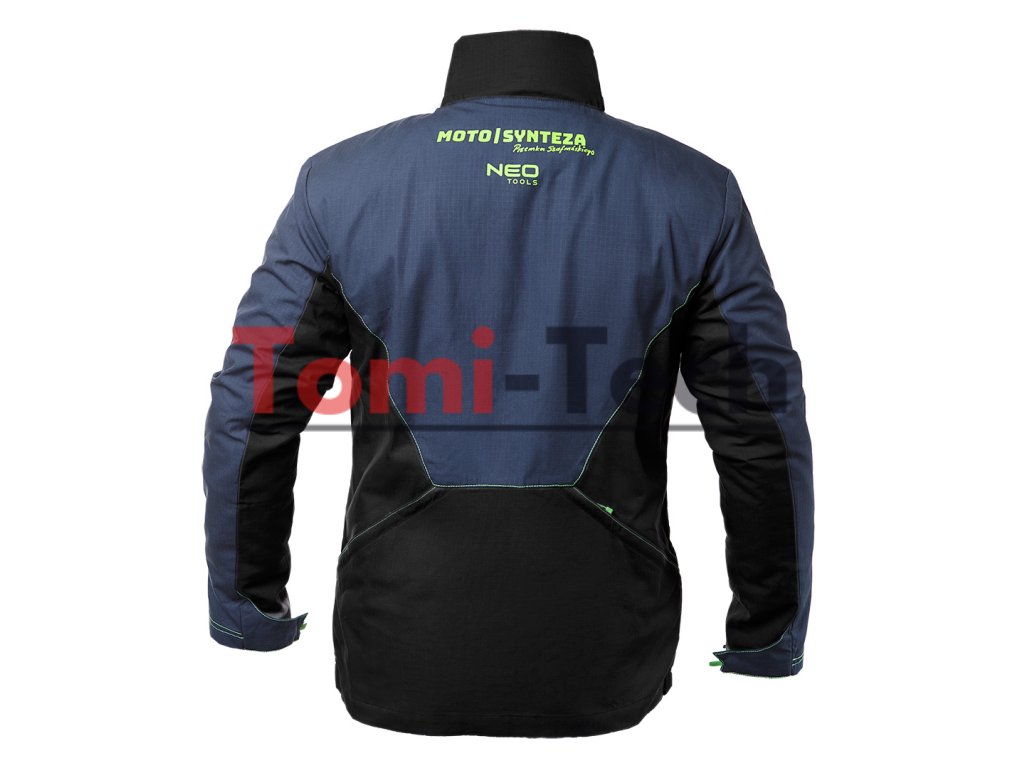 Pracovná mikina Motosynthesis, veľkosť XL, zloženie materiálu: 100 % bavlna, gramáž: 210 g/m2, vyrobená z bavlneného ripstopového materiálu pre vysokú odolnosť a odolnosť proti roztrhnutiu, dodatočné výstuhy z oxfordského materiálu v miestach najviac vystavených oderu, multifunkčné a priestranné vrecká, záhyb zakrývajúci hlavný zips, profilované lakte, nastavenie obvodu rukáva pomocou patentných gombíkov, vnútorná menovka, neónové prvky, jedinečný vlastný dizajn, certifikát CE pre zhodu s normou EN ISO 13688:2013Dodatočné parametre