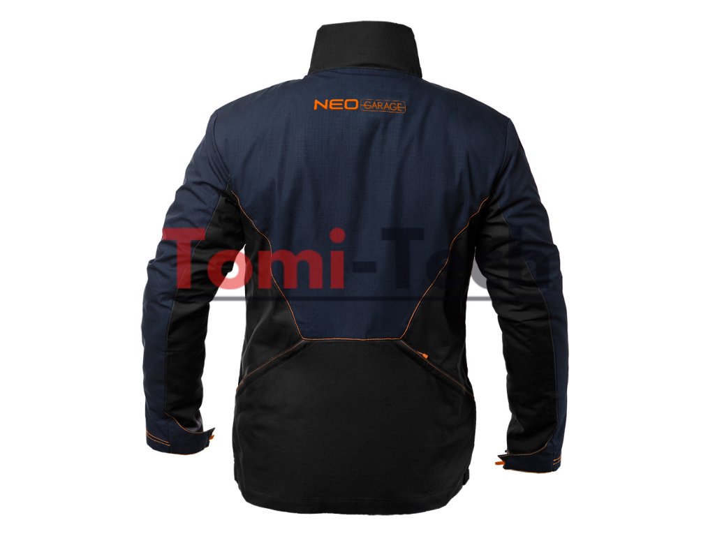 Pracovná mikina Neo Garage, veľkosť S, zloženie materiálu: 100 % bavlna, gramáž: 210 g/m2, vyrobená z bavlnenej ripstopovej tkaniny pre vysokú odolnosť a odolnosť proti roztrhnutiu, dodatočné výstuhy z oxfordskej tkaniny v miestach najviac vystavených oderu, multifunkčné a priestranné vrecká, záhyb zakrývajúci hlavný zips, profilované lakte, nastavenie obvodu rukáva pomocou patentných gombíkov, vnútorná menovka, neónové prvky, jedinečný vlastný dizajn, certifikát CE pre zhodu s normou EN ISO 13688:2013Dodatočné parametre