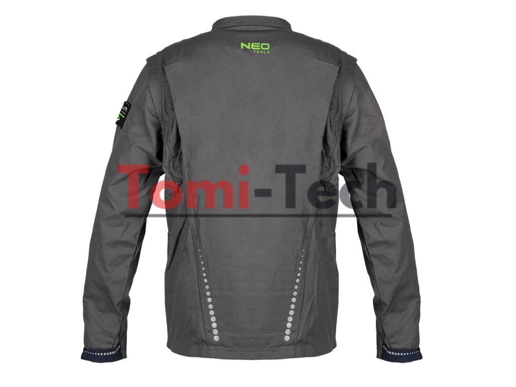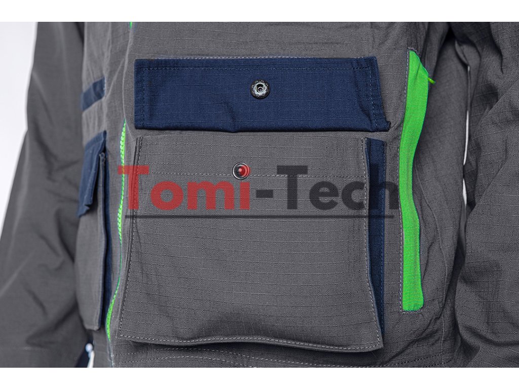 PRÉMIOVÁ pracovná mikina, 100 % bavlna, ripstopová tkanina, gramáž 210 g/m2, možno kombinovať s nohavicami 81-227 a vytvoriť tak overal, mikina s odnímateľnými rukávmi - možno použiť aj ako vestu, stojačik, neónový zips, priestranné vrecká so zipsom alebo patentnými cvočkami, nastaviteľný obvod manžety, reflexná potlač na chrbte, špeciálne záhyby na chrbte pre zlepšenie pohodlia pri práci a rozsahu pohybu, logo na ramene pripevnené suchým zipsom, miesto na identifikačnú kartu - možno skryť vo vrecku, vnútorná menovka, jedinečný vlastný dizajn, certifikát CE, veľkosť LDodatočné parametre