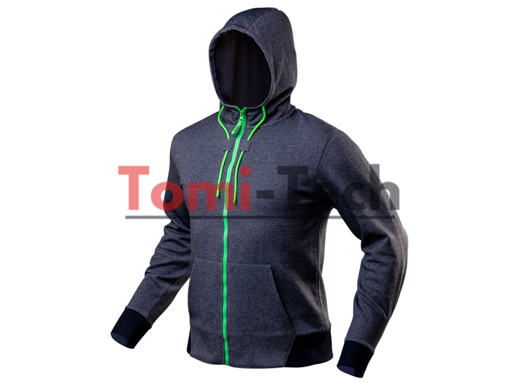 PRÉMIOVÁ pracovná mikina, dvojvrstvová, mikina z dištančného úpletu (lepeného z dvoch vrstiev rôzneho zloženia), kapucňa, manžety na rukávoch a spodnej časti mikiny, neónový zips, neónové šnúrky na kapucni, priestranné vrecká, sťahovák s reflexnou NEO potlačou, vnútorná menovka, reliéfne logo, jedinečný vlastný dizajn, veľkosť XXLDodatočné parametre