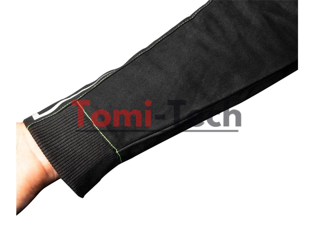Pracovná mikina PREMIUM PRO, čierna s neónovo zeleným prešívaním, zloženie hlavného materiálu: 100% bavlnené plátno s gramážou 425 g/m2, zloženie materiálu výstuh: 75% bavlna, 25% nylon, Cordura NYCO s gramážou 272 g/m2, možno kombinovať s nohavicami 81-234 a vytvoriť tak overal, 12 multifunkčných vreciek na zips alebo magnetické patentky, tvarované rukávy so sťahovacou šnúrkou v spodnej časti, predĺžený chrbát s ďalšími vreckami, výstuhy Cordura NYCO na vreckách, rukávoch, ramenách a chrbte, zipsy YKK, reflexné prvky 3M, vonkajšia nášivka na ramene so suchým zipsom s možnosťou umiestnenia vlastného loga, vnútorná menovka, jedinečný vlastný dizajn, certifikát CE, veľkosť XXLDodatočné parametre