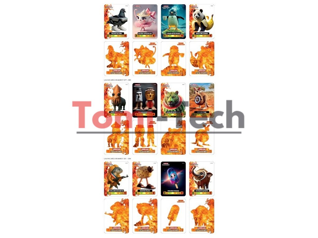 Zalaminované karty s postavičkami z hitu TikTok! Vyrobené v Taliansku. Každé vrecko obsahuje 4 štandardné karty + 1 špeciálnu kartu. Na zozbieranie je 129 štandardných kariet a 33 špeciálnych kariet (celková kolekcia je 162).