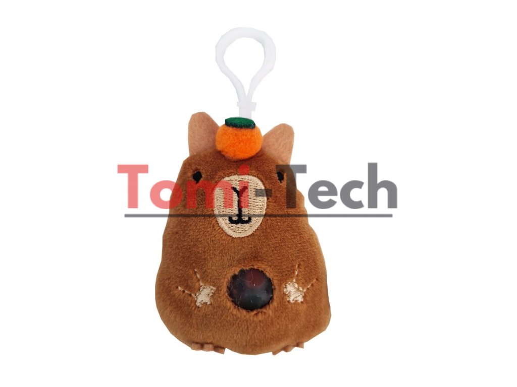 Kľúčenka Capybara od Toys Inn je perfektným riešením pre milovníkov malých vychytávok. Je vyrobená z mäkkého a príjemného plyšu na dotyk. Unikátnou vlastnosťou kľúčenky je mäkký prvok ukrytý v brušku kapybary. Keď stlačíte kľúčenku, zvnútra vyskočia mäkké, farebné a skákajúce guľôčky, ktoré sa po uvoľnení tlaku vrátia do stredu. Tento prvok poskytuje veľa radosti a zábavy a je skvelým spôsobom, ako znížiť stres. Kľúčenka je navyše vybavená praktickou plastovou karabínou, ktorá vám umožní jednoducho ju pripevniť na kľúče alebo batoh.