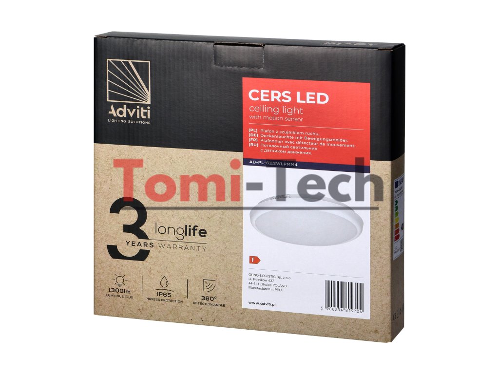 CERS LED 16W, stropné svietidlo s mikrovlnným senzorom pohybu, 1300lm, IP65, 4000K, mliečny polykarbonát, biele, stmievateľnéDodatočné parametre
