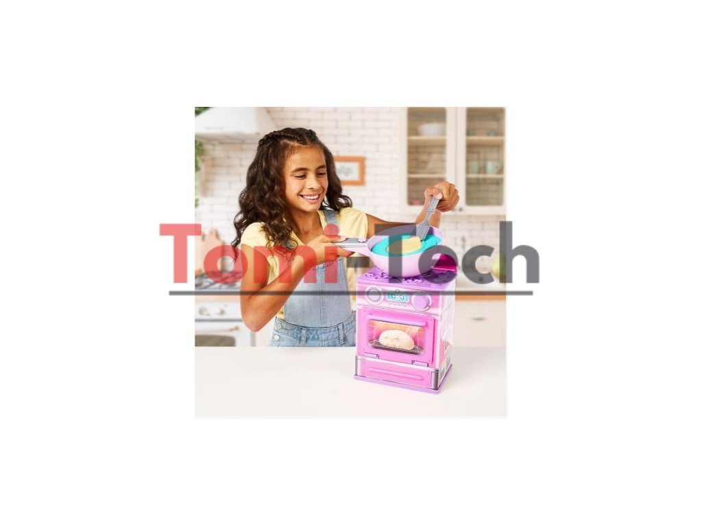 Stlačte tlačidlo na rukoväti panvice a pohybujte sa, akoby ste chceli panvicu vyhodiť nahor. Na panvici sa objaví voňavá plyšová palacinka!