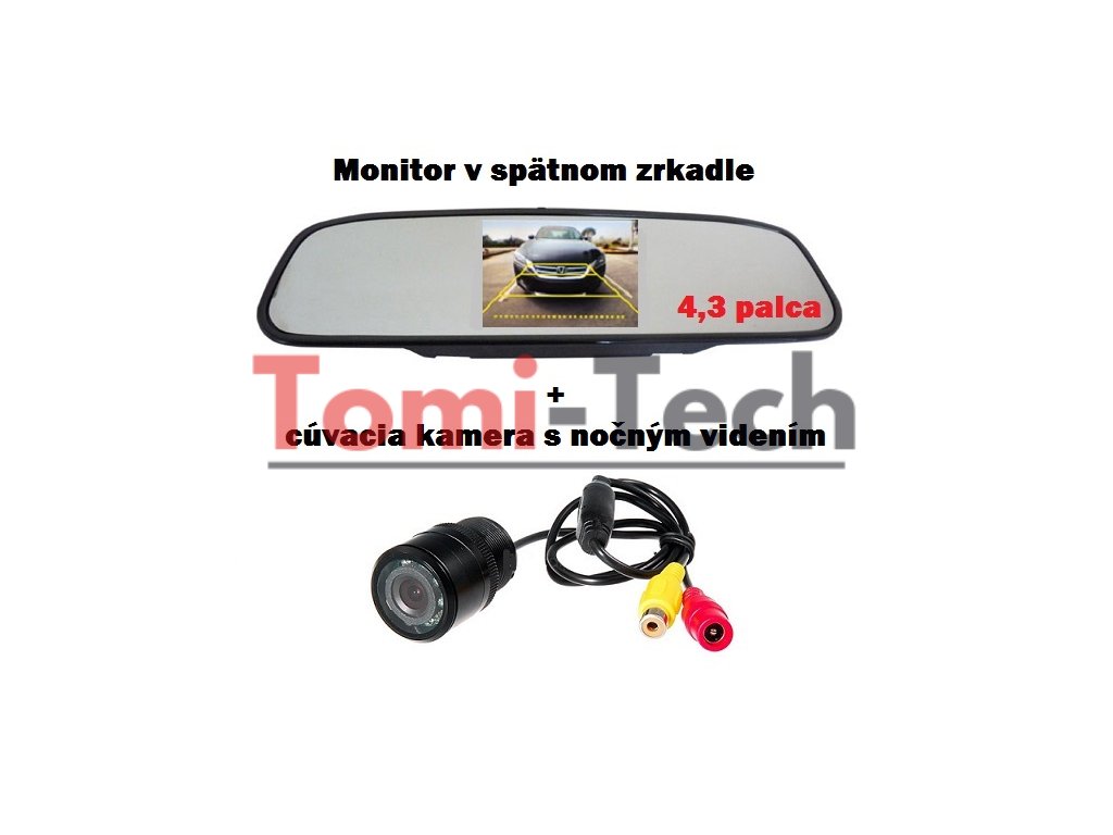4,3 LCD palcový monitor ukrytý v spätnom zrkadle a univerzálna cúvacia kamera s nočným videním je skvelý komplet vhodný do každého automobilu.