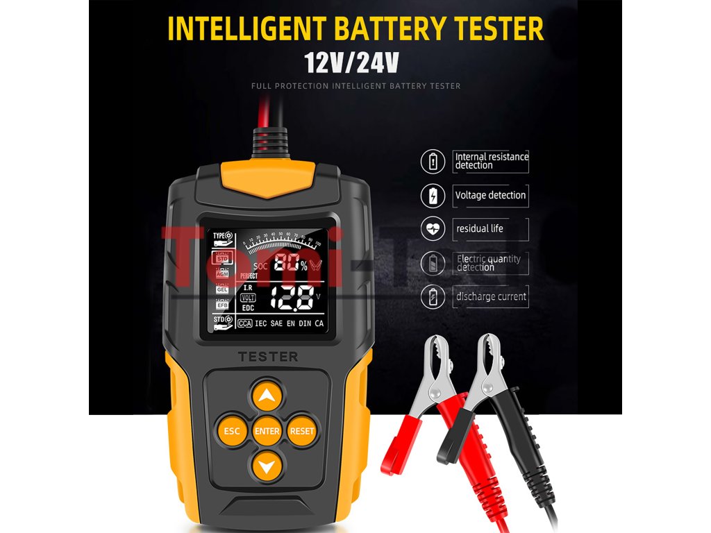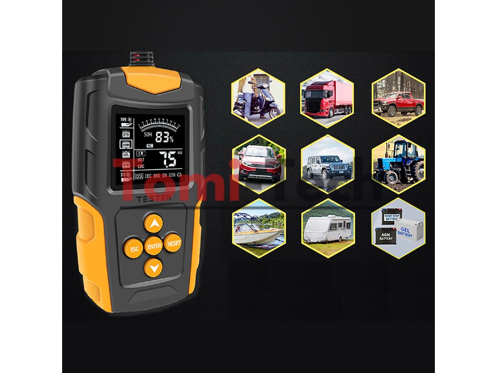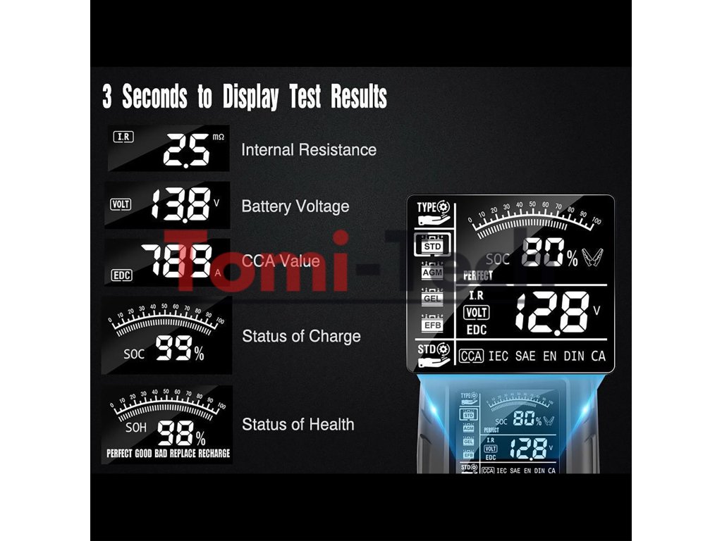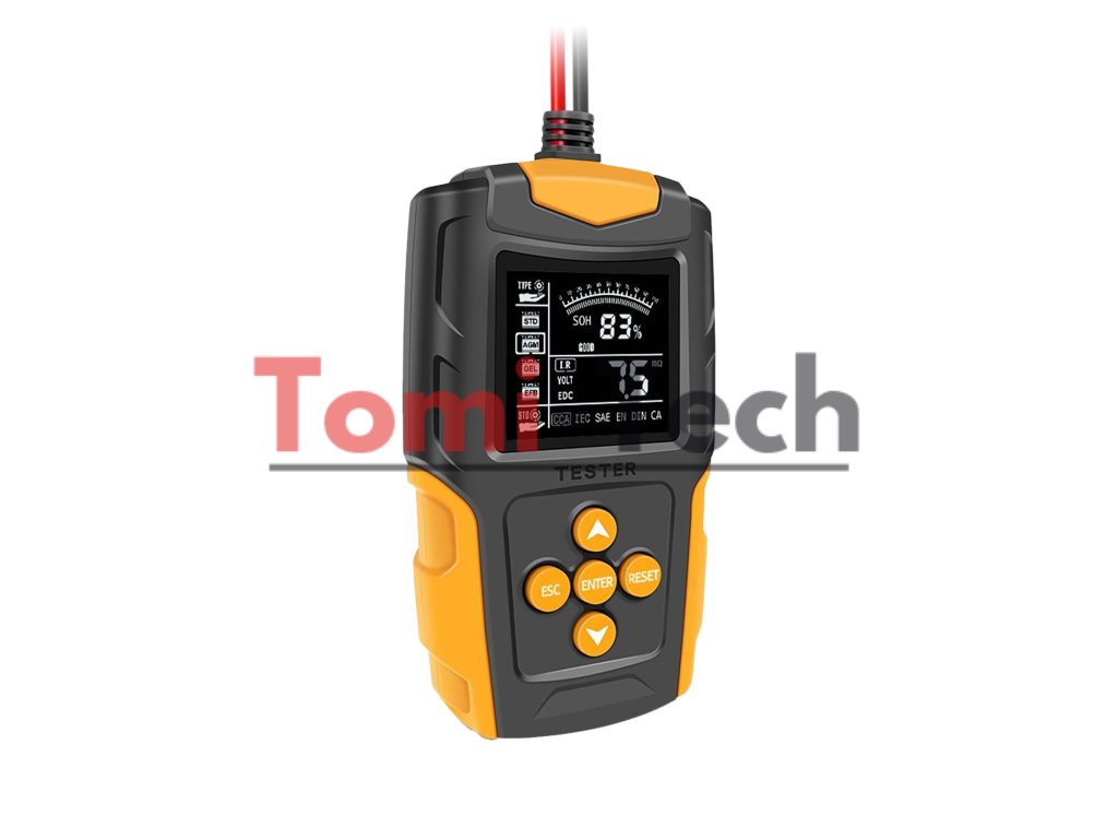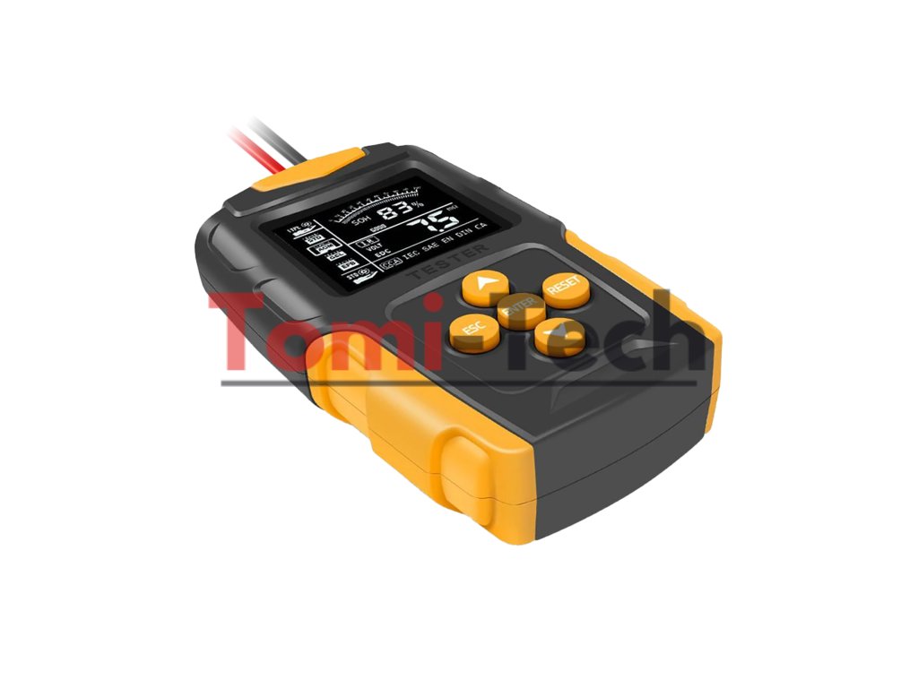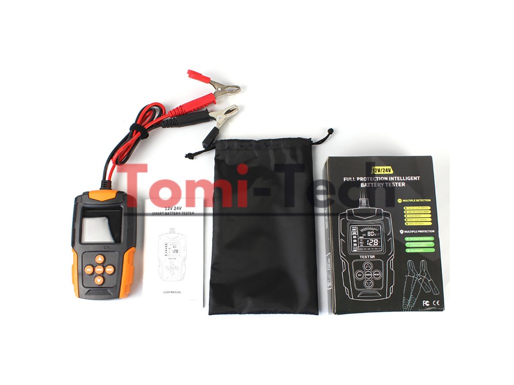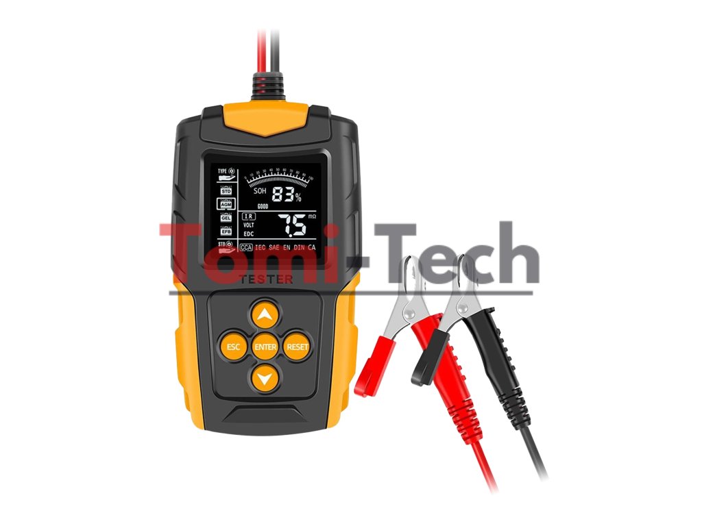 Tester je kompatibilný s nasledujúcimi batériami: Kyselinové / olovené (bežné / štandardné batérie) AGM ploché / doskové AGM špirálové gélové EFB Testovanie 12V a 24V batérií Tester EUROKOMP umožňuje merať: napätie a % nabitia batérie / test batérie štartovací prúd / test štartovania prevádzku alternátora / test nabíjania odpor batérie / vnútorný odpor Používateľská príručka v poľštine dostupná na stiahnutie v elektronickej verzii Špecifikácia: Pracovné prostredie Teplota: 0*C až 50*C Skladovacia teplota: -20*C až 70*C Materiál puzdra: kyselinovzdorný ABS plast Rozsah merania kapacity batérie: 2Ah-220Ah Napätie / Použitie: 6V a 12V Vstupné napätie: 6V~16V Výsledky merania stavu batérie v %: SOC - stav nabitia batérie SOH - stupeň opotrebenia batérie Rozsah testovania: 3AH - 200 Ah Materiál puzdra: ABS materiál Rozsah merania napätia: 8-30VDC Testovacie normy: SAE, DIN, IEC, EN, CA, JIS Výsledok testu: SOH, SOC, hodnota CCA, IR atď.Dodatočné parametre