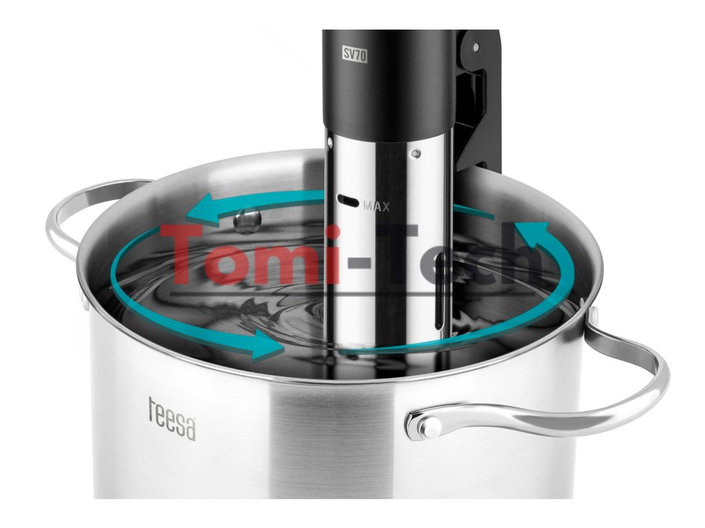 Kuchynský obehový hrniec Teesa sa vyznačuje širokým rozsahom regulácie teploty a času varenia. S Teesa SV70 môžete pripravovať mäso, ryby a zeleninu a zároveň zachovať čo najviac vitamínov a živín.