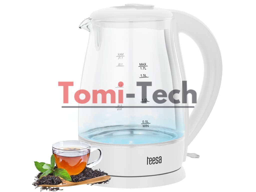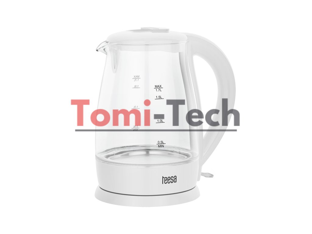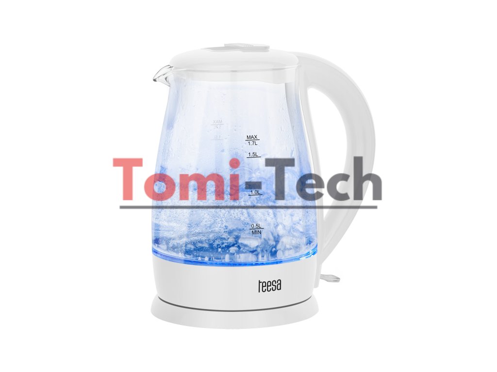 Rýchlovarná kanvica TEESA, sklo, 2000 W, biela, 1,7 l