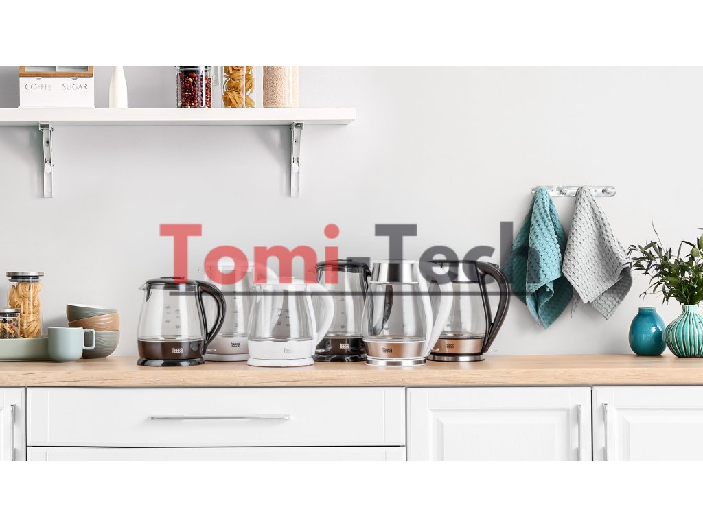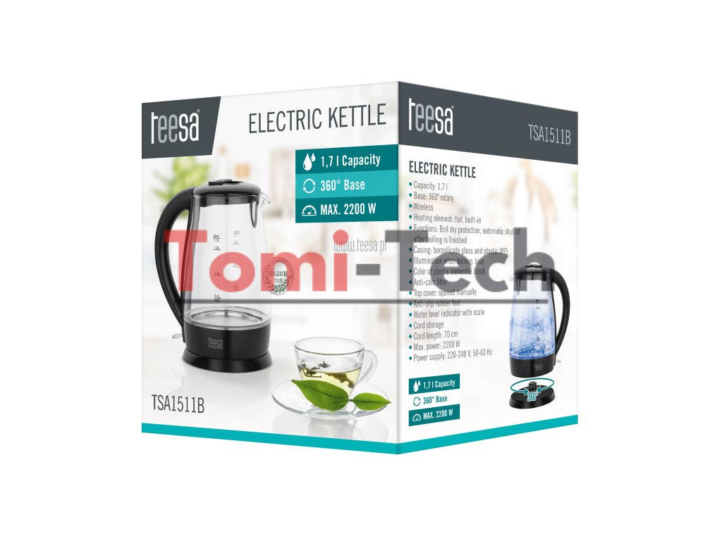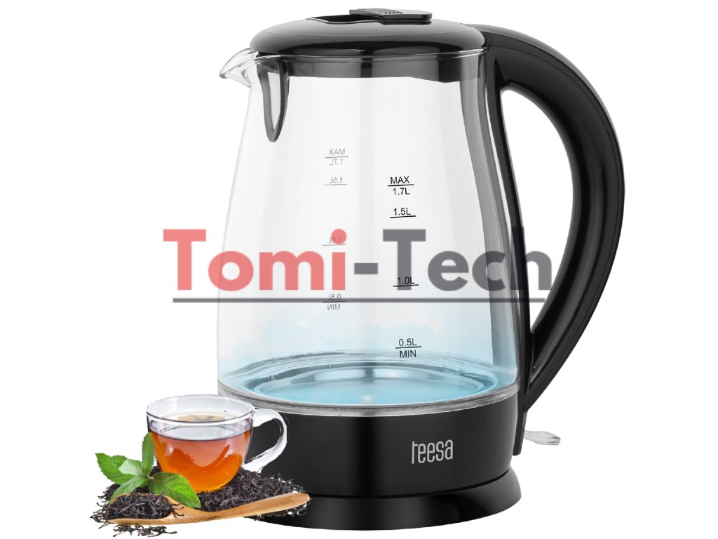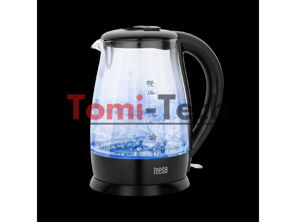 Rýchlovarná kanvica TEESA, sklo, 2200 W, čierna, 1,7 l