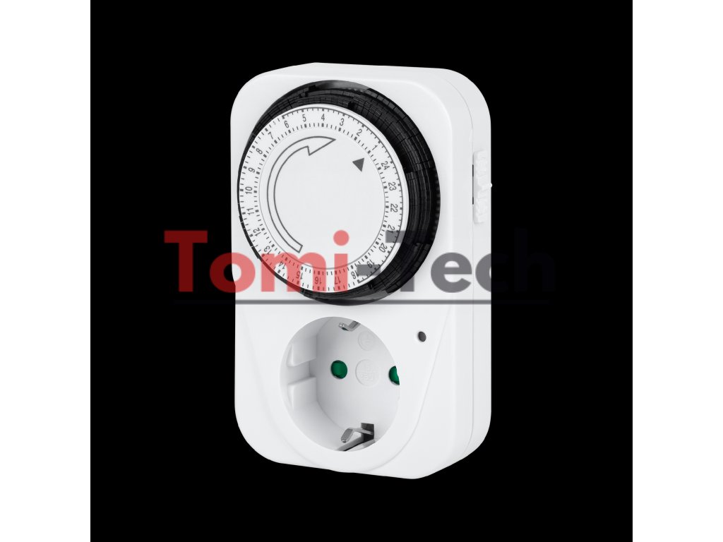 Časovač TS-WF1 je praktické riešenie pre automatickú správu prevádzky elektrických zariadení vybavených nemeckou zásuvkou. Vďaka svojej funkčnosti a pevnej konštrukcii umožňuje časovač efektívne ovládanie zariadenia v 24-hodinovom cykle, čím zaisťuje komfort a úsporu energie.